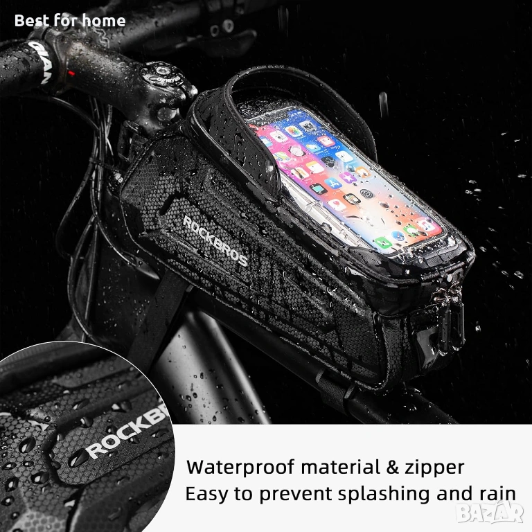 Чанта за велосипед ROCKBROS за телефон, водоустойчива, с твърда обвивка от EVA и дъждобран