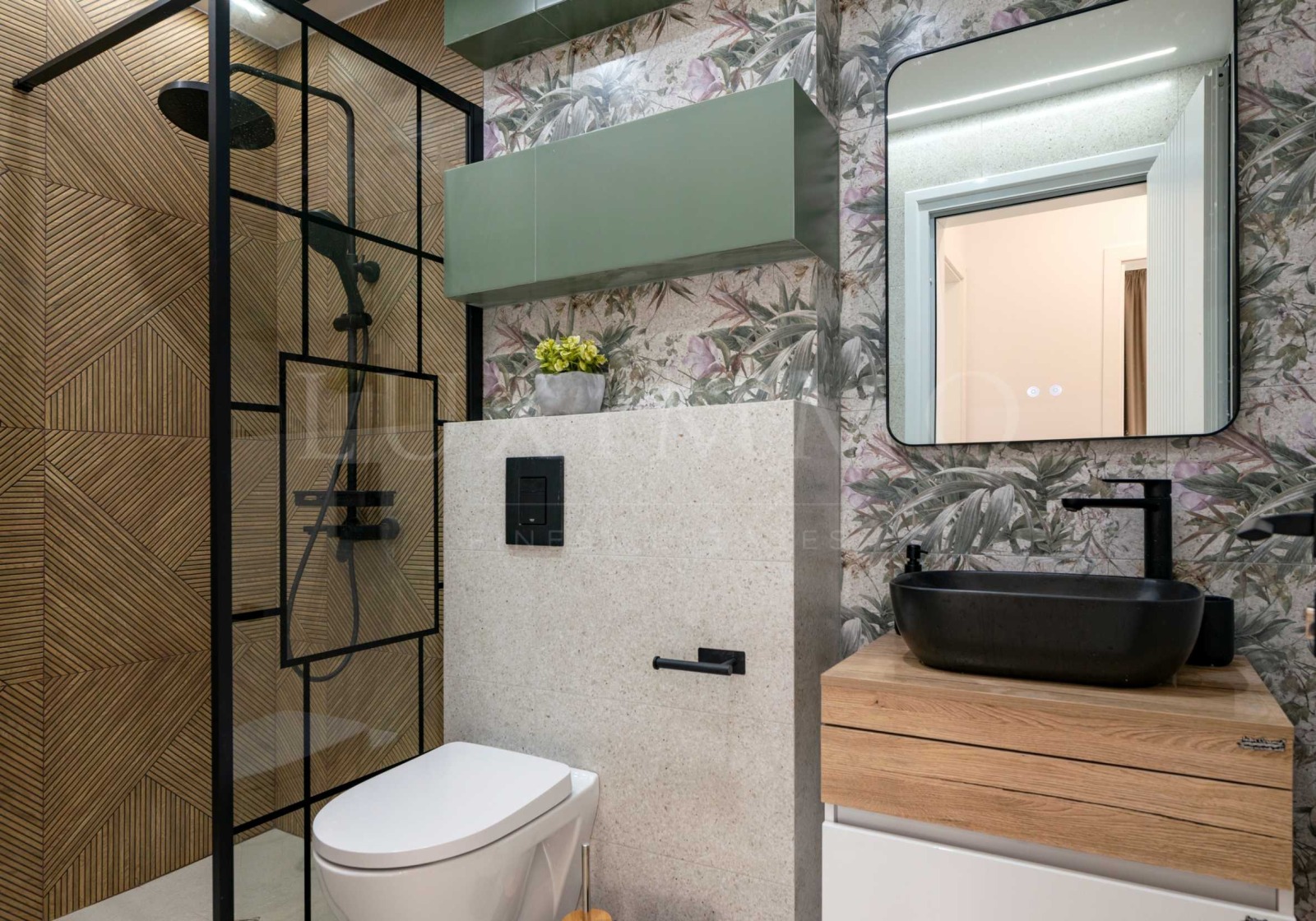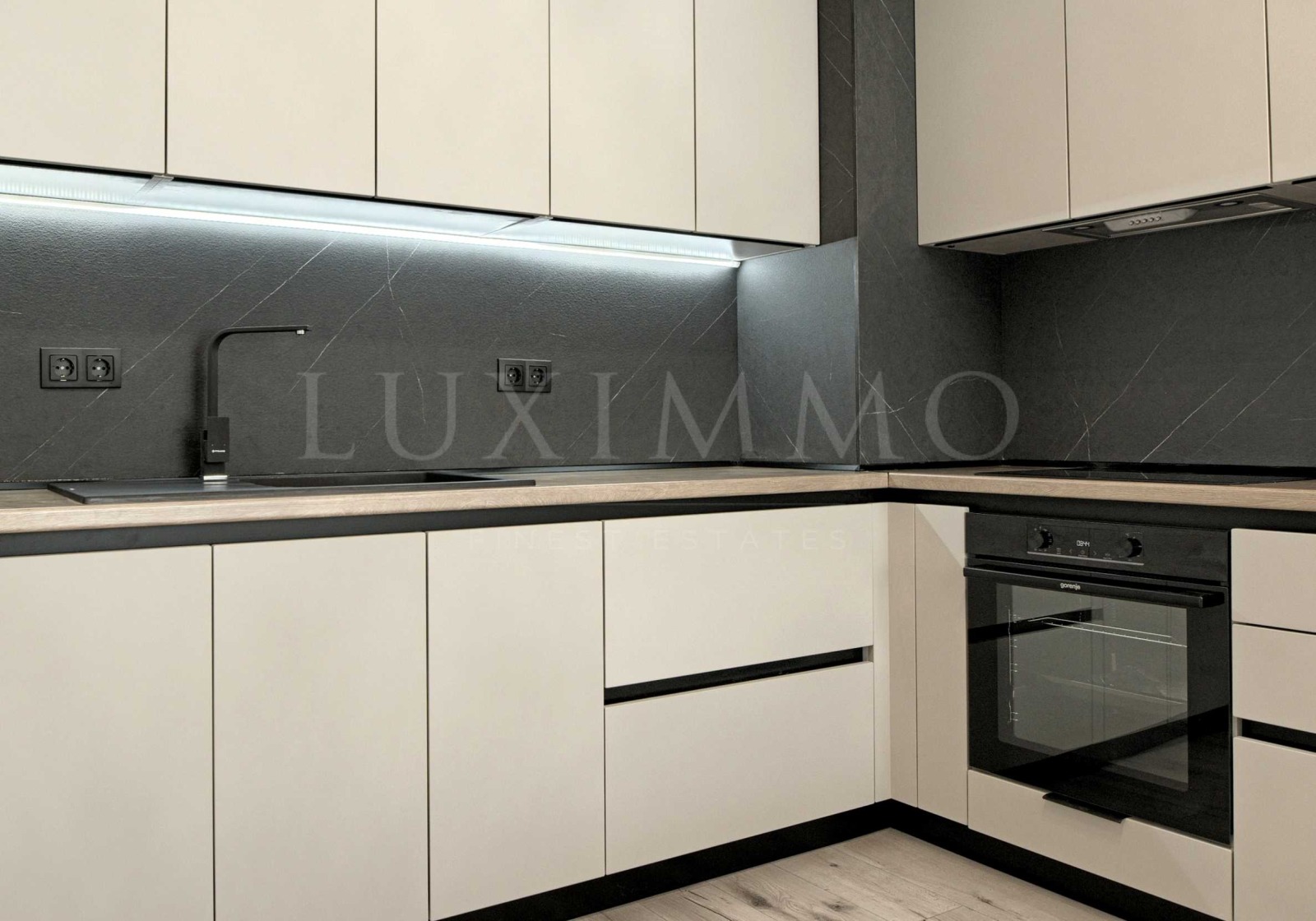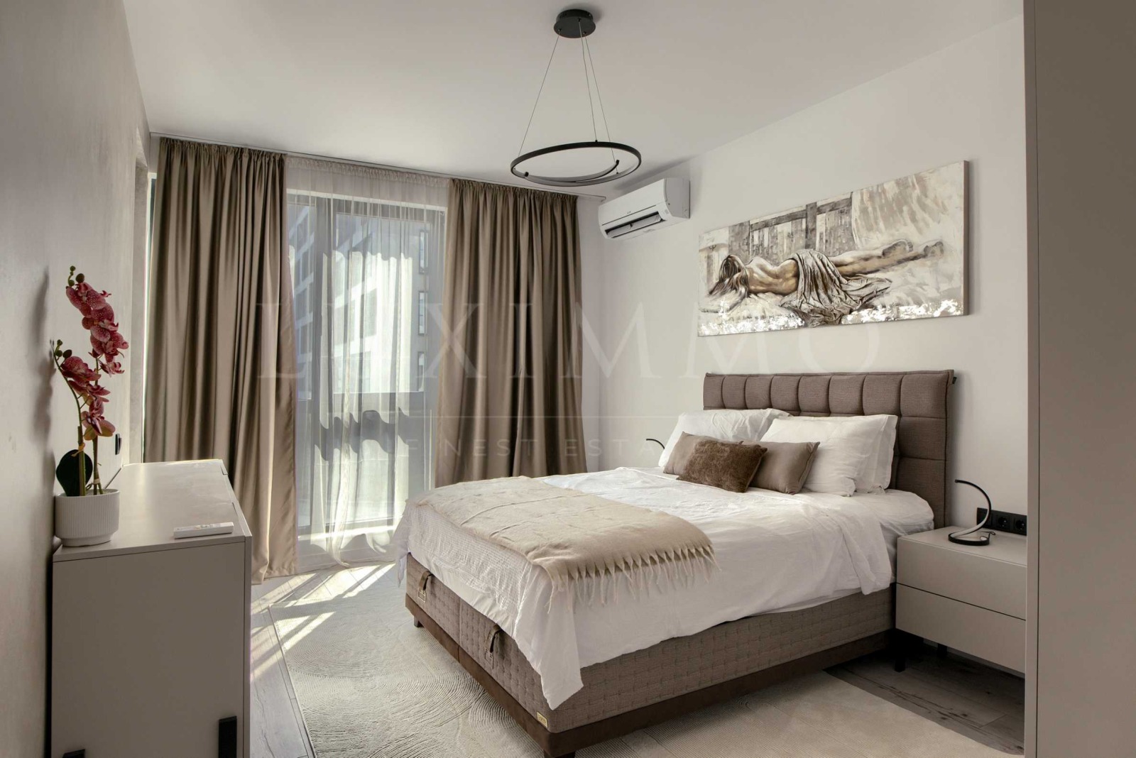Апартаментът е напълно обзаведен и оборудван с нови мебели и електроуреди от най-висок клас в гаранция аспиратор, котлон, фурна, хладилник, съдомиялна и пералня. Отоплението и охлаждането са решени с климатици и централна система.