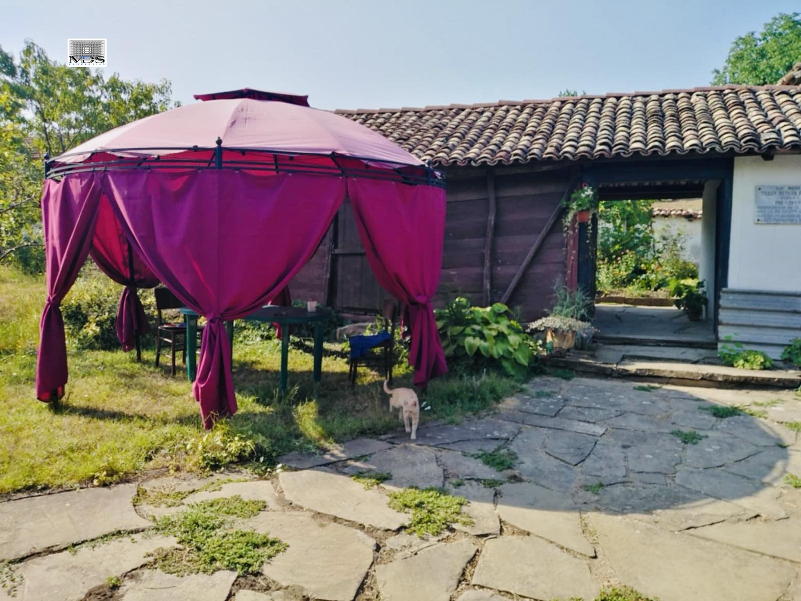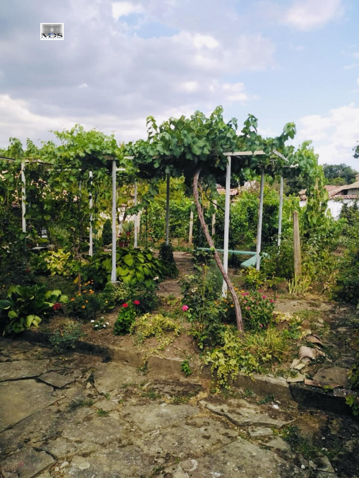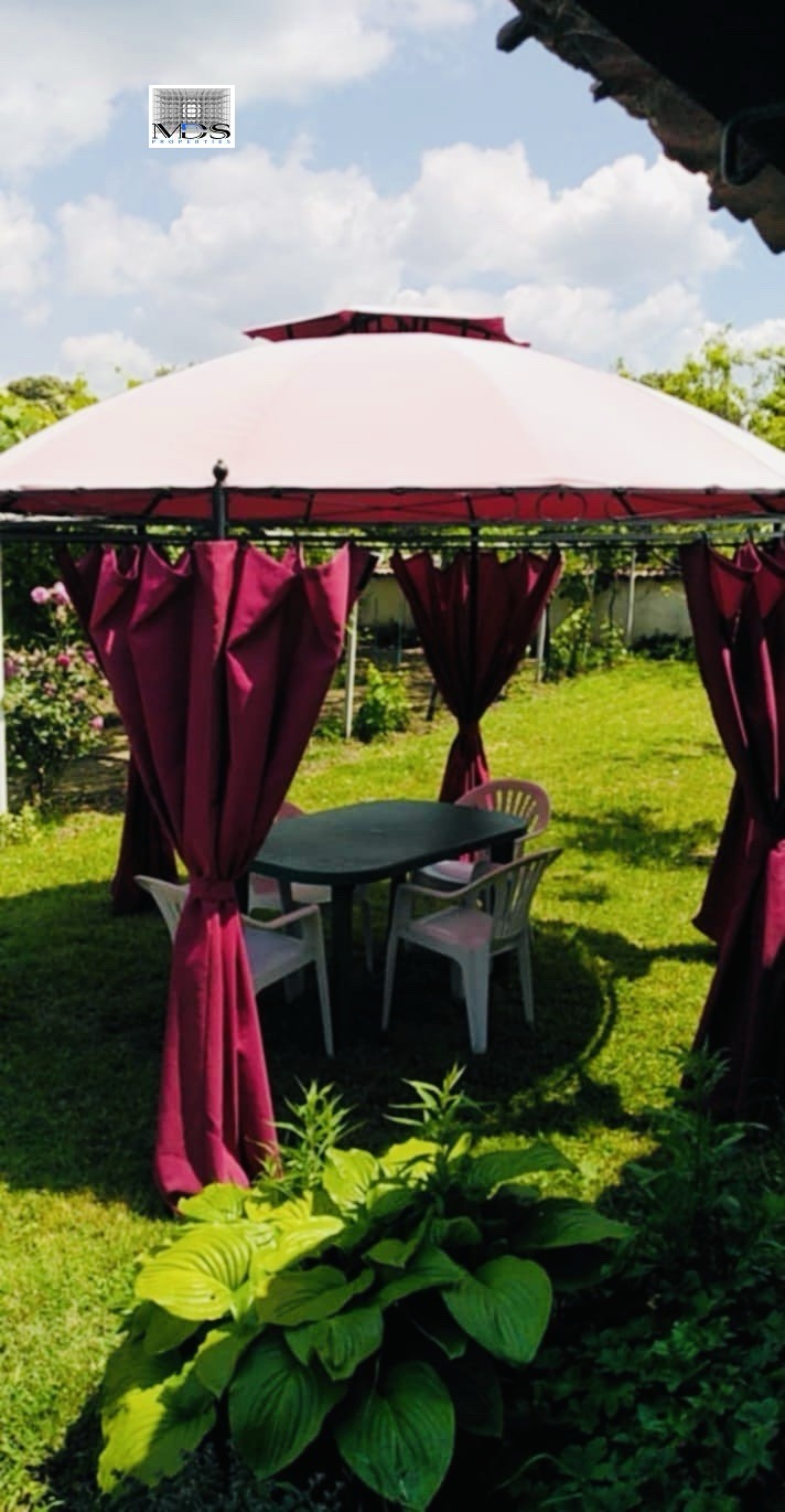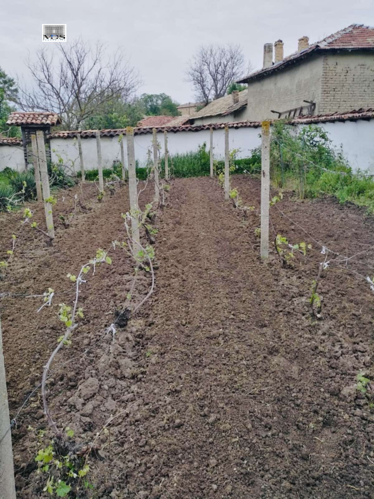 Имотът е разположен на парцел с площ от 2,5 дка и предлага разнообразие от плодородна земя. В него ще откриете метална оранжерия, асмалък с отлично подбрани десертни и винени сортове, както и лозе, което може да бъде основа за бъдещото Ви вино. Също така, ще се насладите на овощна градина с разнообразие от плодове, като праскови, сливи, ябълки, круши, череши и вишни, както и малини, ягоди и лешници.