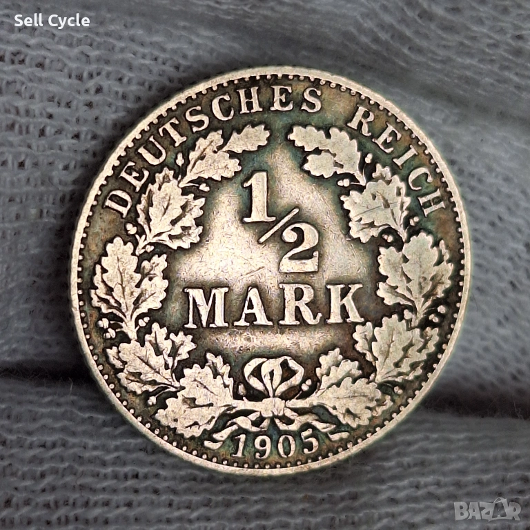 ✅ГЕРМАНСКА ИМПЕРИЯ - 1/2 марка 1905 г. - D - СРЕБРО❗