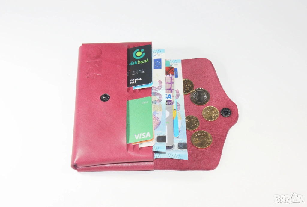- Разполага с 6 слота за карти, които побират до 12 карти, 2 големи отделения за банкноти, отделение за монети и 2 допълнителни отделения за карти и бележки