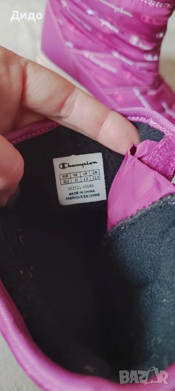 Champion създават най-добрите спомени заедно. Нека вашите принцеси се наслаждават на комфорта на модела, докато правят снежни топки и първите си сигурни стъпки. С дизайна и избора на цветове получавате обувки, които се съчетават с всяка модна комбинация. Ботушите Champion галят крака и го поддържат сух благодарение на водоустойчивите си свойства. Синтетичната кожа и найлонова горна част осигуряват точното количество издръжливост и комфорт и също така лесно се поддържат. Гумената подметка осигурява сигурност на крака, а EVA междинната подметка гарантира ходене като по ‘’облак’’.