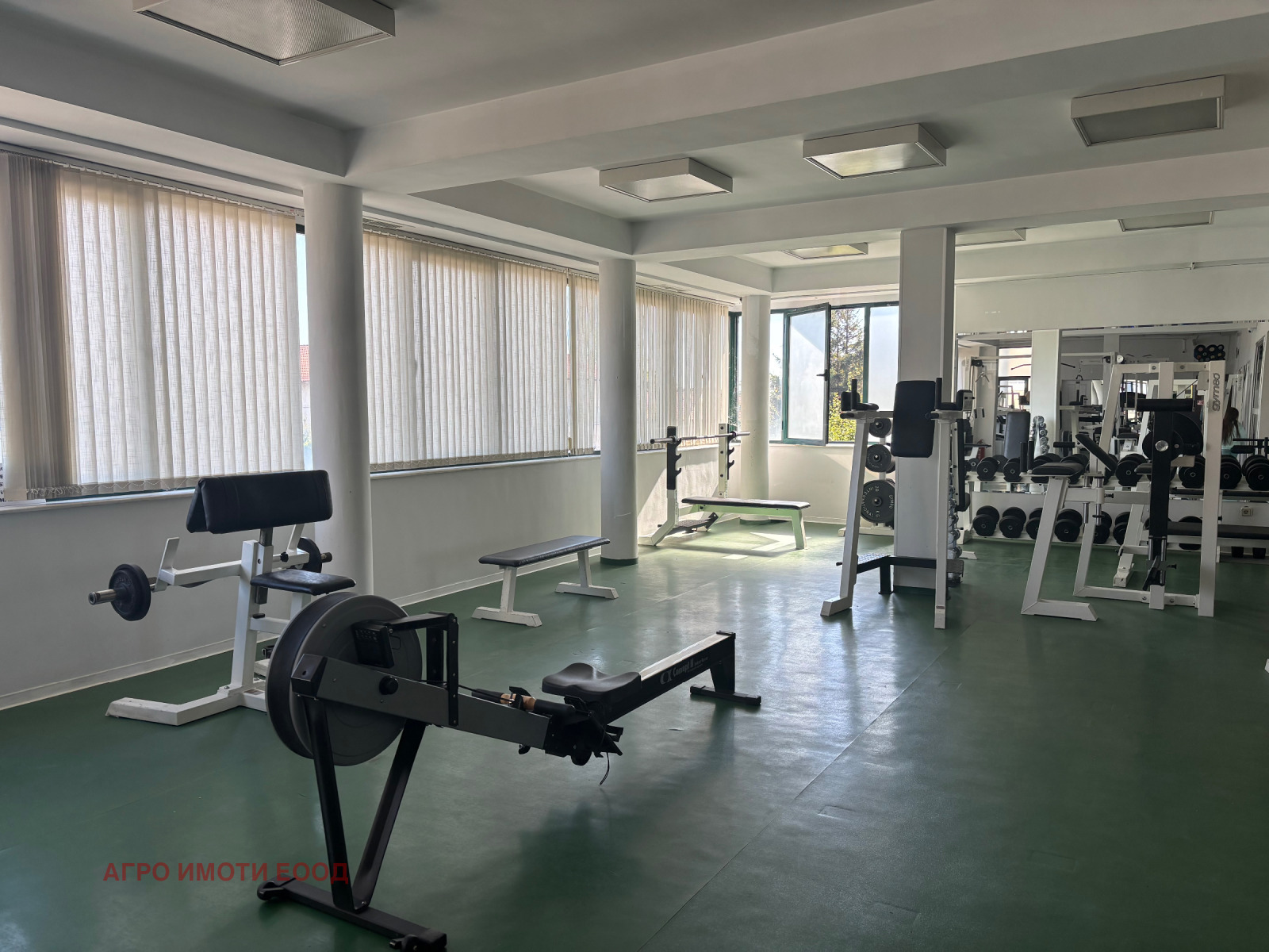 Предлагам спортен център с площ 238кв.м разпределен между основно помещение около 200кв.м, съблекалня жени с душ, съблекалня мъже с душ, сауна с помещение за масаж, офис и тераса. Отделно има тоалетна с мивки и бонус рецепция на първия етаж, която може да се ползва. В сградата има офиси и ресторант. Много комуникативно място в района на Цариградско шосе!