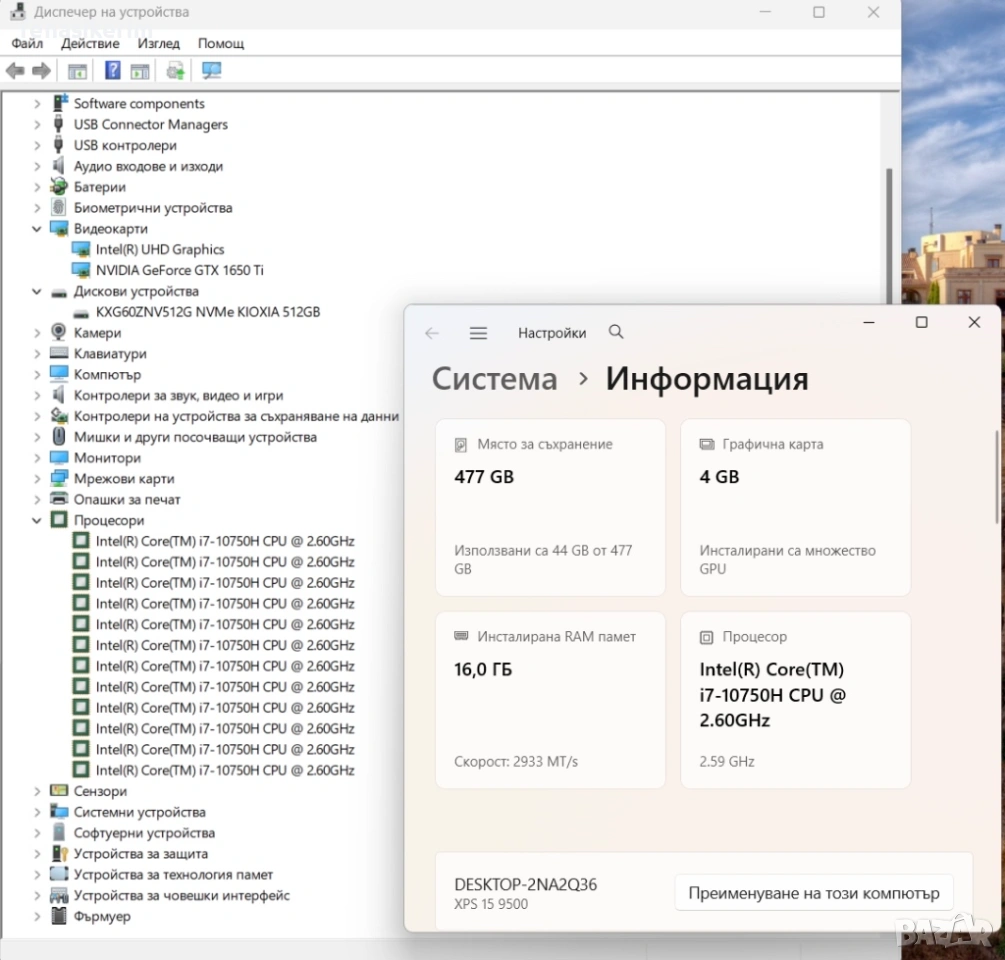 2 видеокарти : Nvidia GTX 1650 Ti 128bit 4GB DDR6 собствена памет + Intel UHD Video - up to 20 GB Shared Graphics memory
