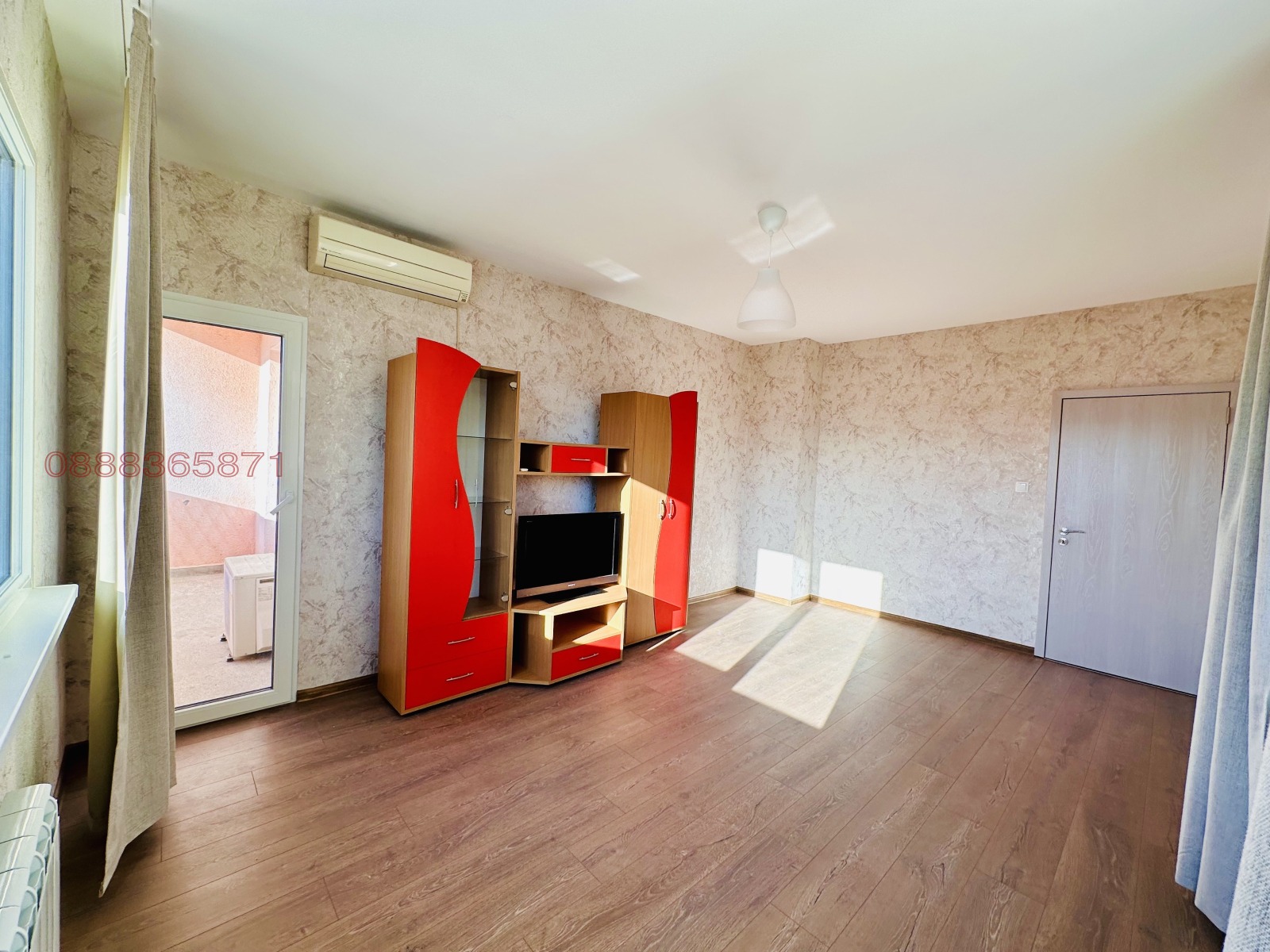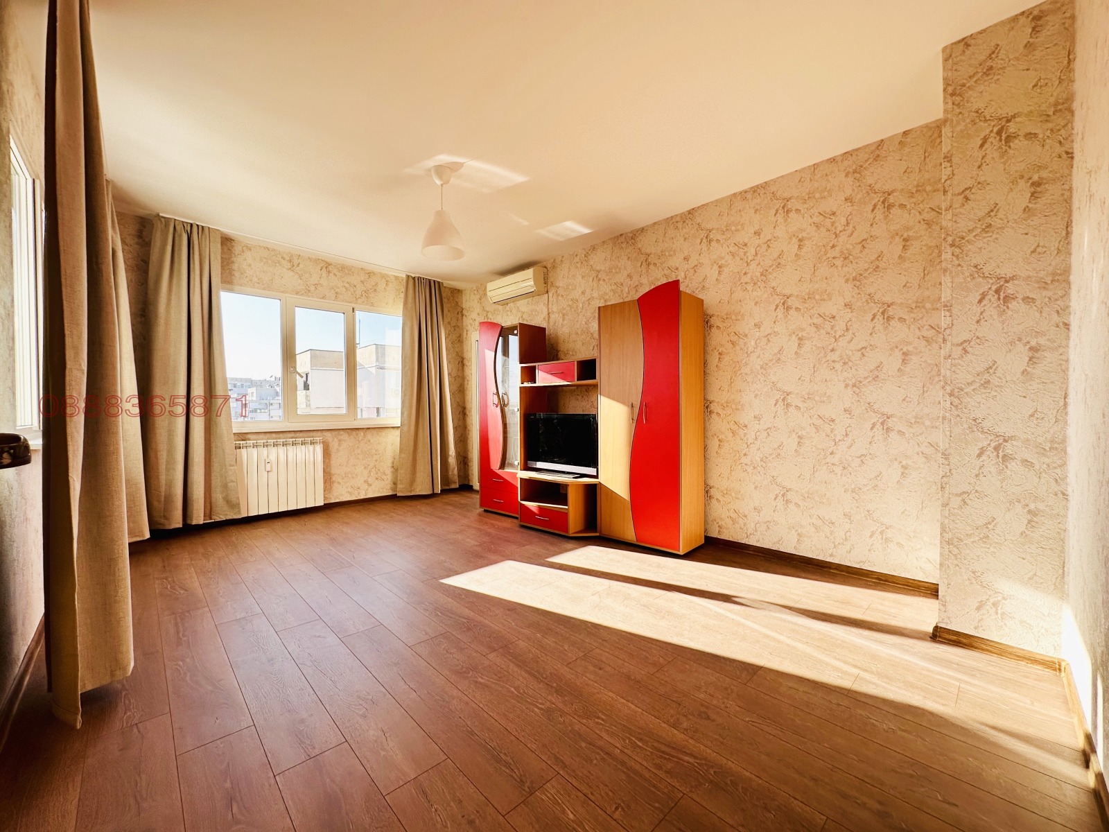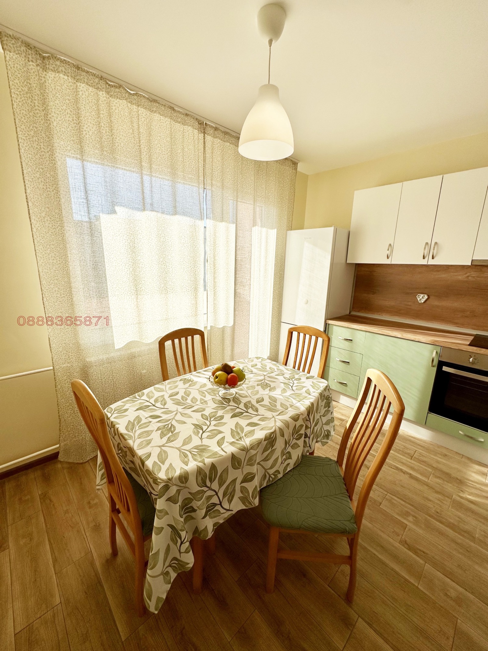 Апартаментът е след основен ремонт, саниран, с нова PVC дограма, нови врати и подови настилки. Банята и кухнята са чисто нови, с нови електроуреди. Кухнята е оборудвана с вградени миялна машина и фурна, пералня и голям хладилник. Спалнята е напълно обзаведена, с нови мебели. Холът е полуобзаведен (има секция, телевизор и климатик), с идеята да прецените за какво да го ползвате, тъй като може да се превърне и в детска стая. Апартаментът е с 2 тераси - от едната в далечината се вижда Витоша, а от другата Стара планина.
