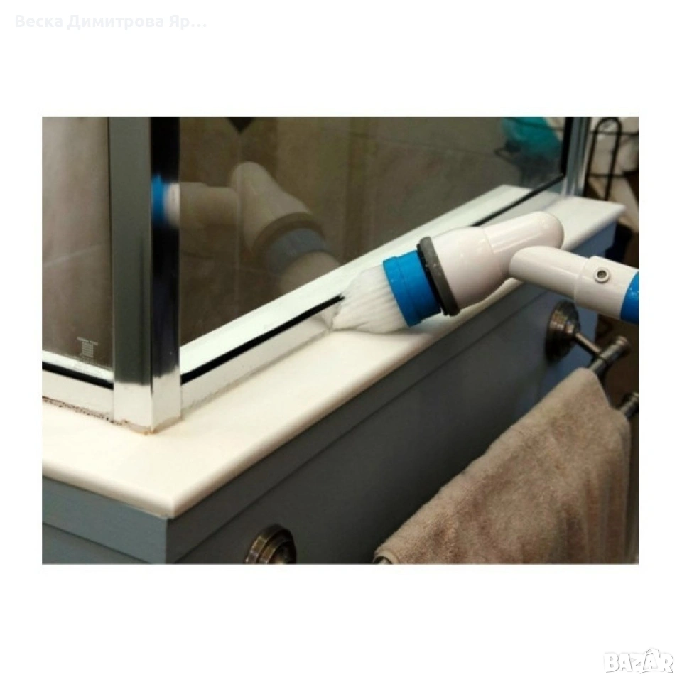 Електрическа четка за почистване на баня Spin scrubber/ Четката работи с акумулаторна батерия. Тя се зарежда от електрическата мрежа. Приставки към нея позволяват да почистите бързо големи площи, ъгли и аксесоарите в банята. Необходимо е да напръскате повърхността с подходящ препарат. След това включете четката в действие./Размер: 107 см * 8 см * 12 см; Време за работа: около 1 час;/Комплекта включва: Електрическа четка за почистване на баня; Почистващи четки; Акумулаторна батерия; Адаптер; Гаранция 12 месеца.