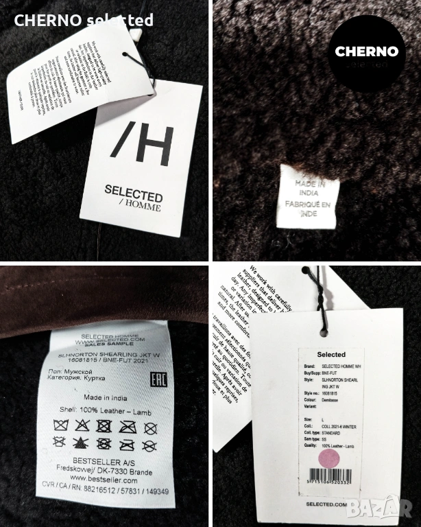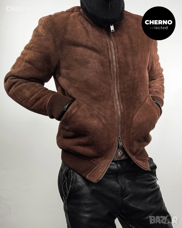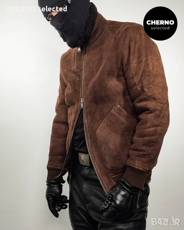 Мъжко бомбър яке от естествена кожа SELECTED HOMME NORTON Lamb Shearling Bomber Jacket – размер L•M – Ново с етикети