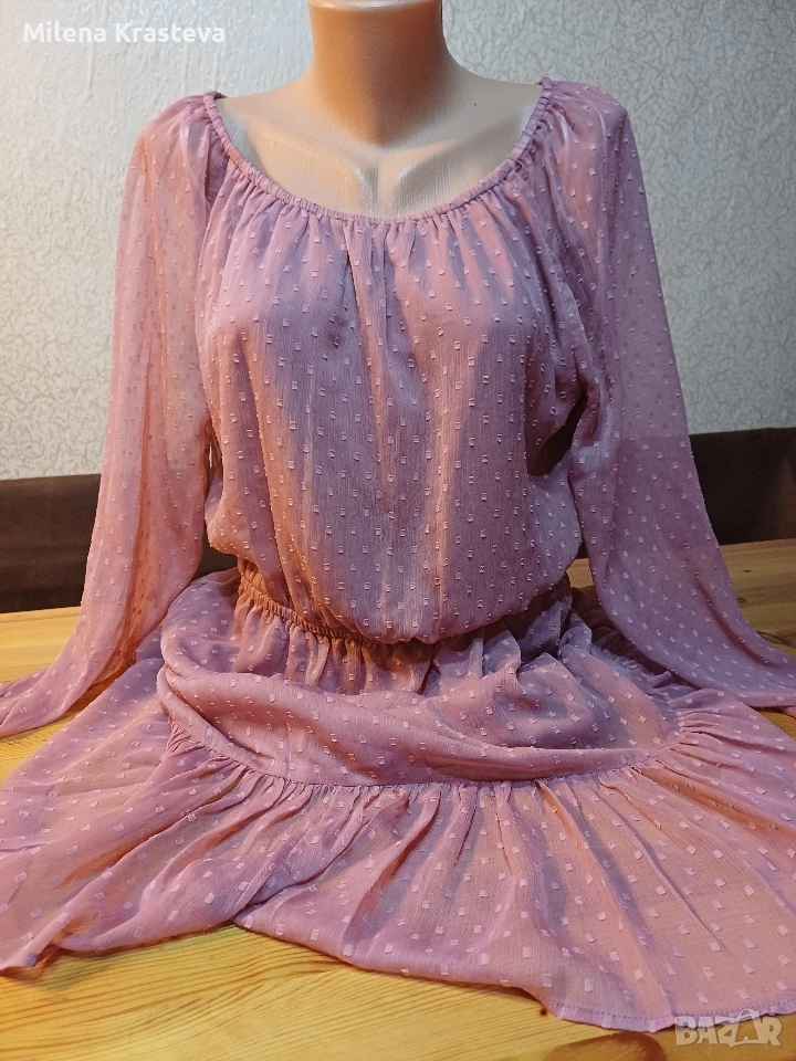 Нежна рокля, удобна свежа на цвят. налична финна подплата заради дантелата. дълъг дантелен ръкав