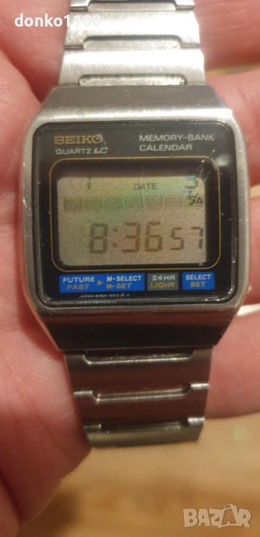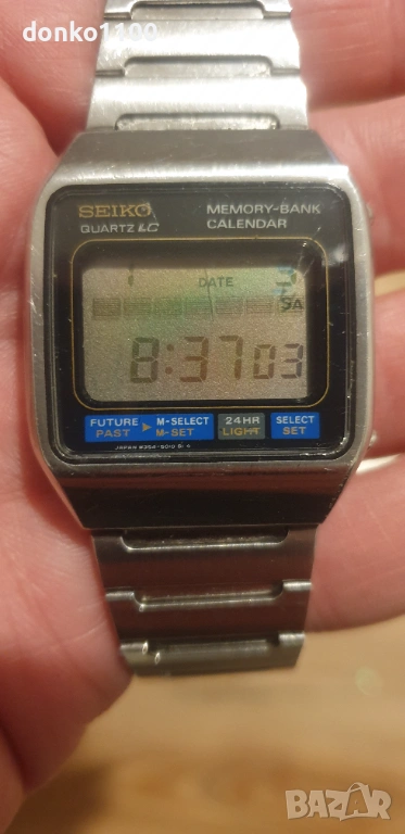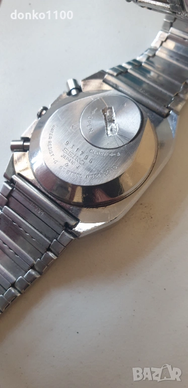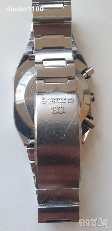Прекрасен и много запазен Сейко от 70те години участвал във филм за Джеимс Бонд! Всичко работи отлично. Долният бутон след натискане трябва да се издърпва, но не смея да отваря и пипам-може да е мръсно или лепсва пружинка! Оригиналната верига е в пълен размер и ще стане за китка над 20 см.! Може да се обаждате на тел 0888 нула нула 30 28. Имам и още часовници!