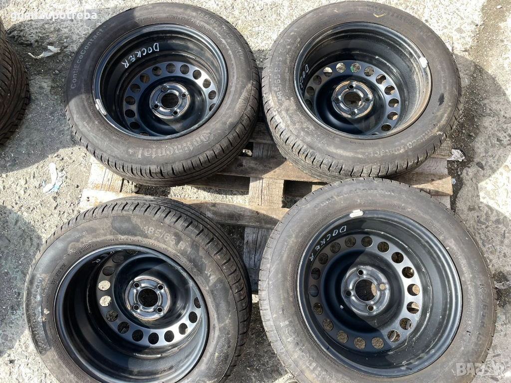 15 цола джанти 4х100 Dacia Logan Sandero Dokker et40 6J 185/65/15 Continental → Обява 53685780
