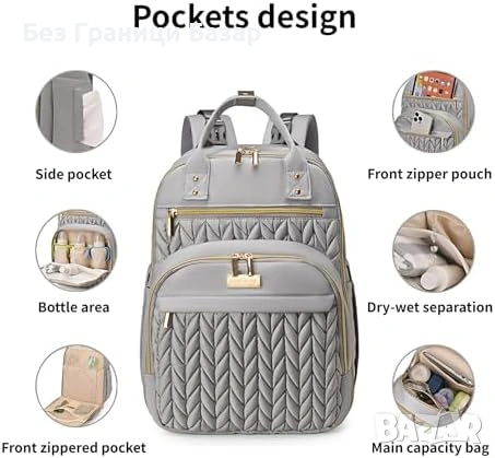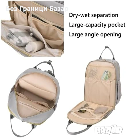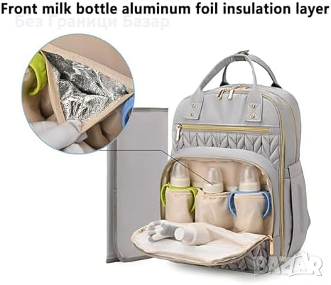 Голяма вместимост с много отделения за пелени, шишета, дрехи и бебешки аксесоари