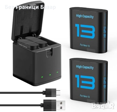 Нови GoPro Hero 13 батерии 2 броя 2800mAh + 3-канално зарядно станция