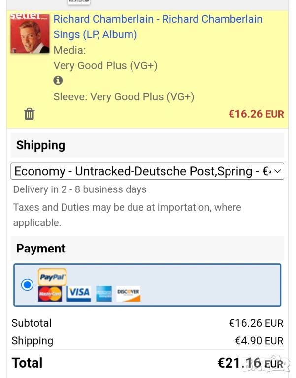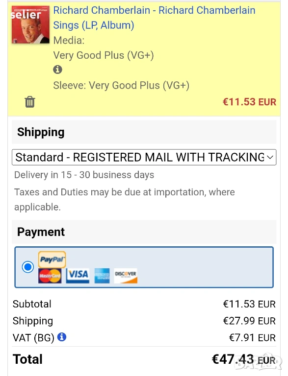 Състояние на винила:звука е VG+,визуално има тънки като косъм черти,но звука си е ок