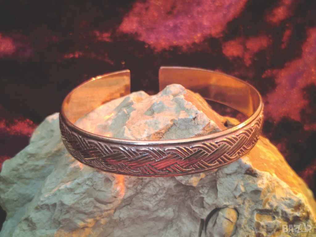 Изящна и минималистична медна гривна, която е стилно и уникално бижу, предлагащо както стил, така и потенциални ползи за здравето. Изработена от чиста мед, в съвременен стил, подходящ за ежедневно носене или за специални поводи.