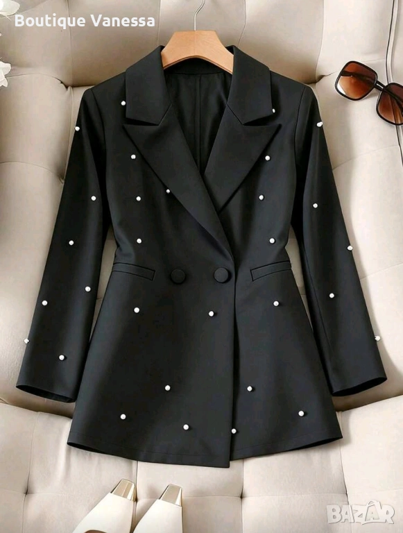 Дамско елегантно сако в черно с перли → Обява 53686499
