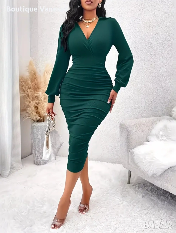 Дамска рокля с дълъг ръкав в зелено → Обява 53686611