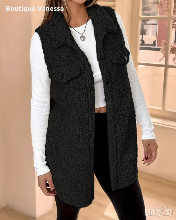 Дамски пухкав елек в черно → Обява 53686633