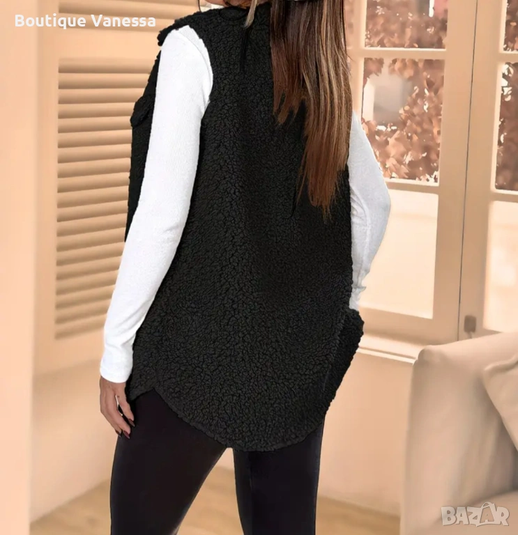 Дамски пухкав елек в черно , снимка 1 - Елеци - 53686633 Дамски пухкав елек в черно , снимка 2 - Елеци - 53686633 1/2