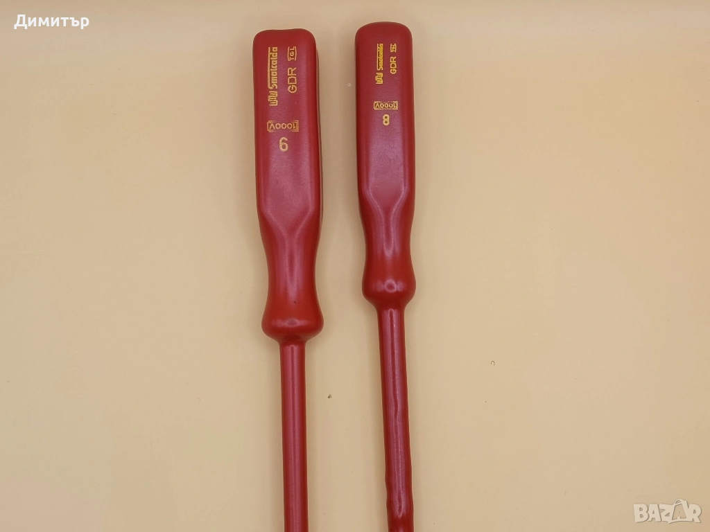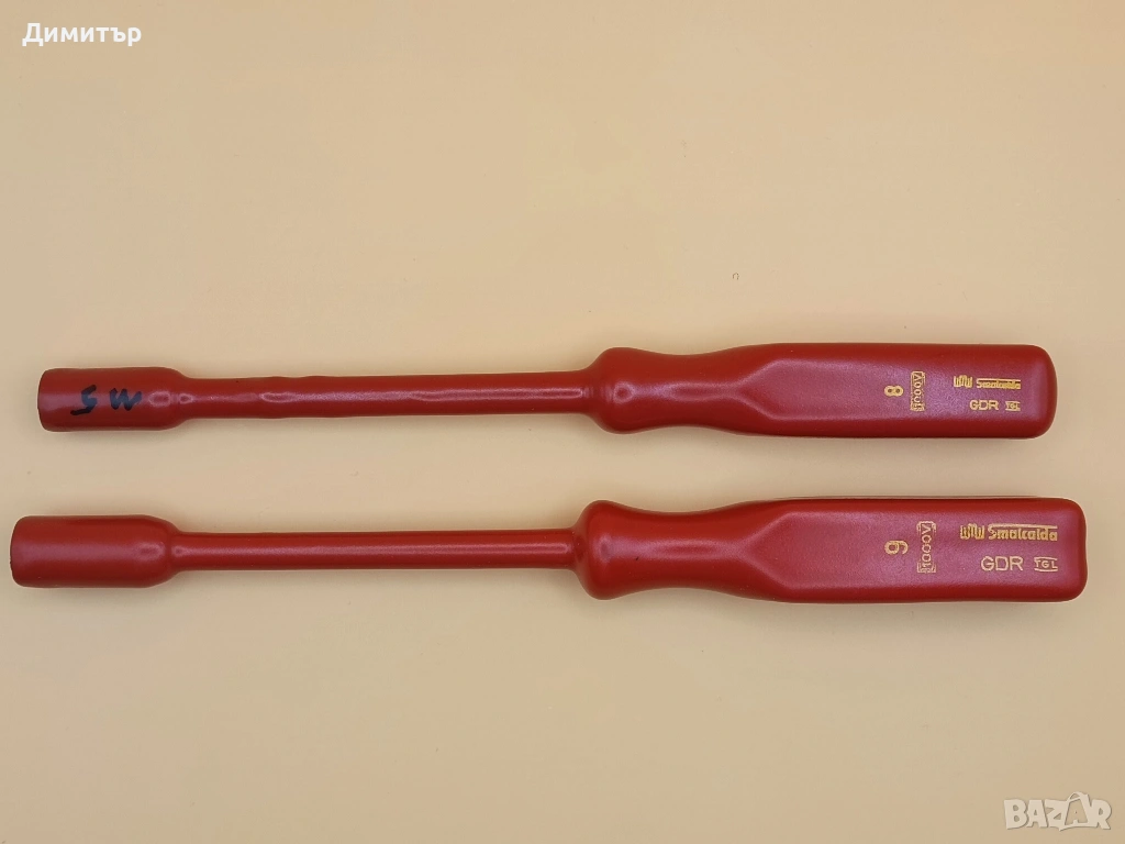 2 бр. изолирани отвертки с вътрешен шестостен на немската марка Smalcalda - 8 и 9 мм. Отлично състояние, без забележки. Дължина: 225 мм на отвертката от 8 мм и 235 мм на тази от 9 мм.
