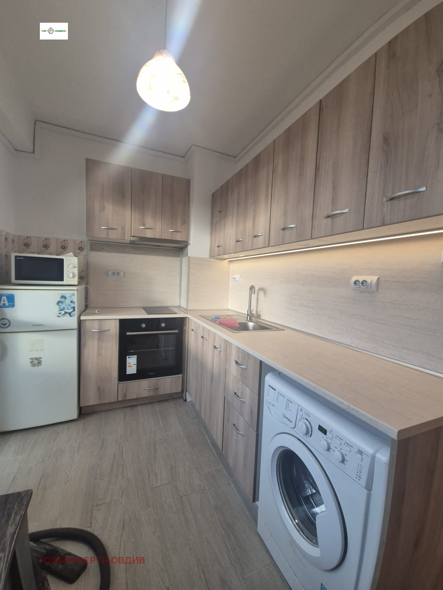 - В дневната е обособен уютен кът за отдих, а кухнята е оборудвана с всички необходими уреди: микровълнова, хладилник, готварска печка, котлони, пералня и абсорбатор.