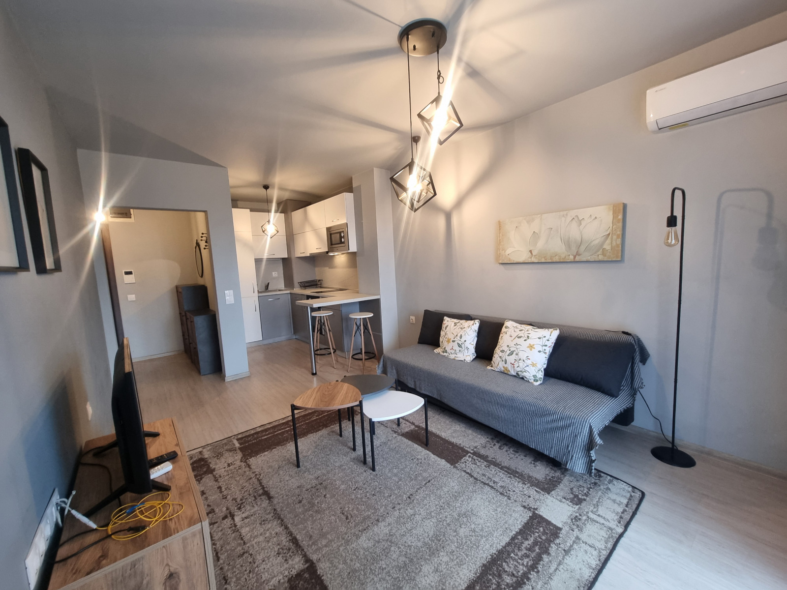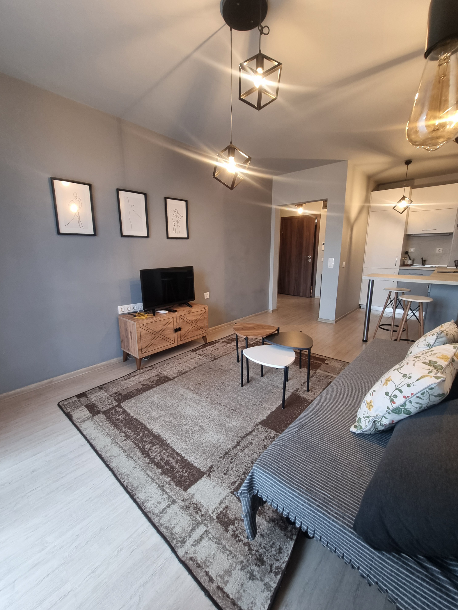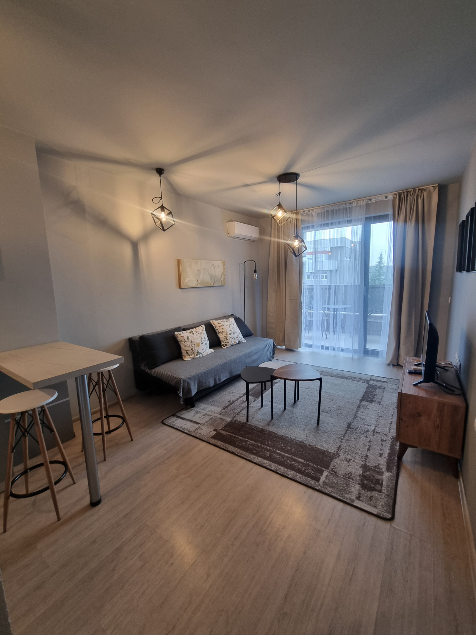 Апартамента се дава напълно обзаведен с всички необходими мебели и електроуреди от най-висок клас.