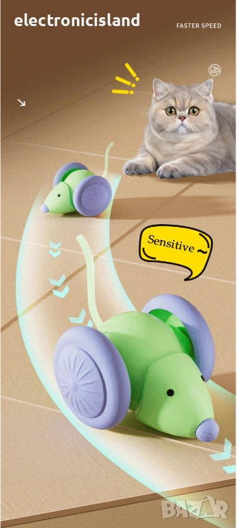 [2026 Обновено] Умнa интерактивнa играчки за котки, Wicked Mouse Plus Автоматична играчка за любимец