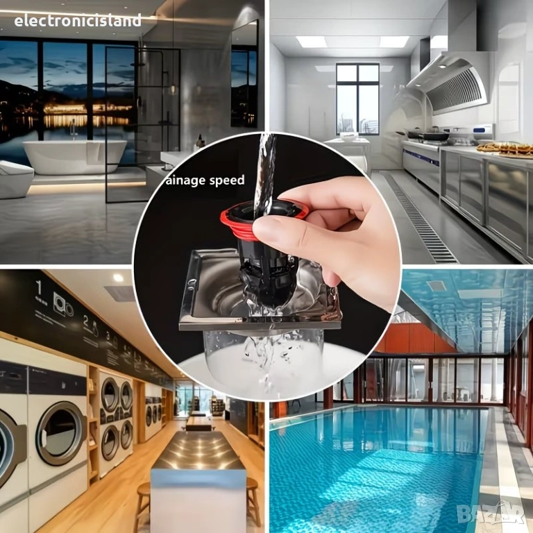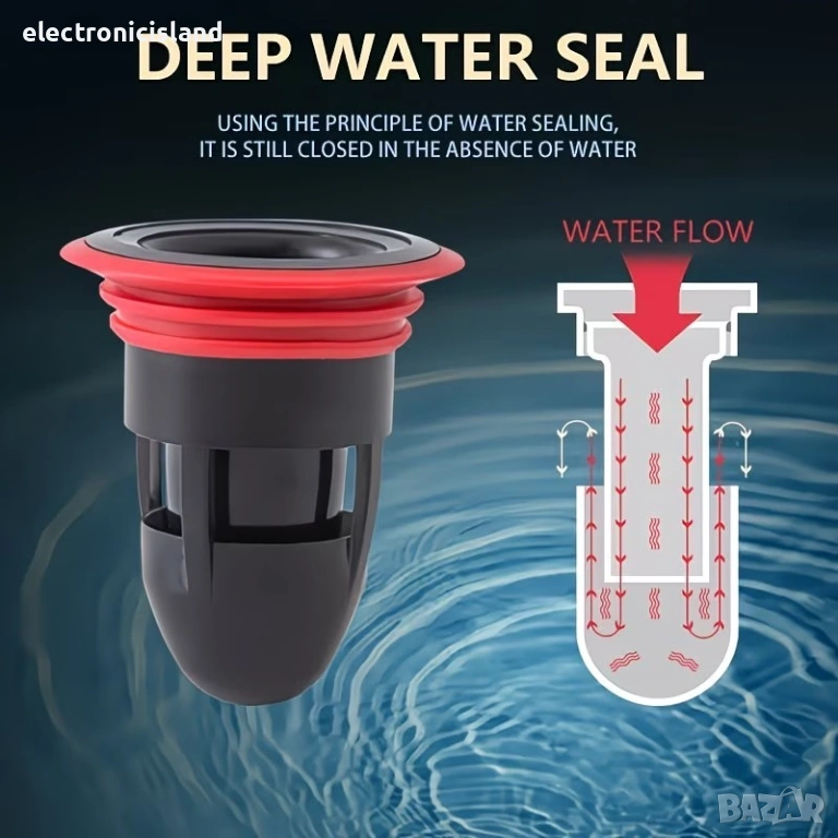 Силиконов сифон против миризма на под, предпазител от обратен поток на водата, баня или кухня, черен