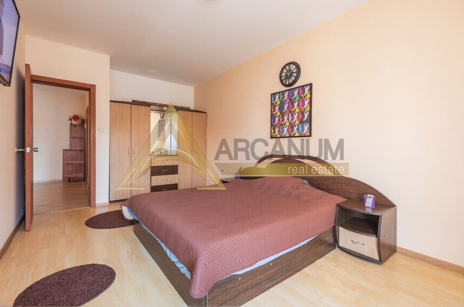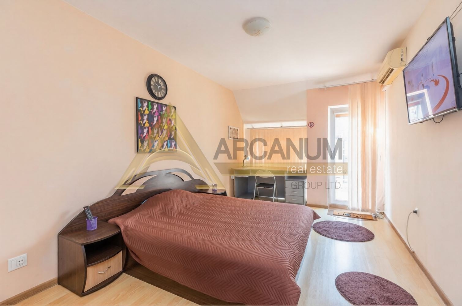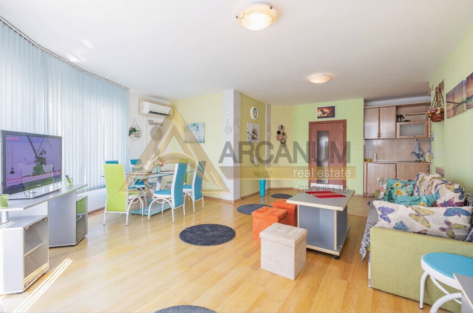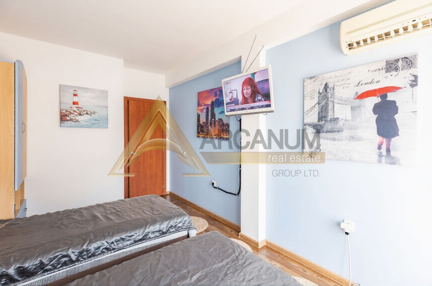 Апартаментът е напълно обзаведен, с климатици във всяка стая, готов за нанасяне без необходимост от допълнителни инвестиции.