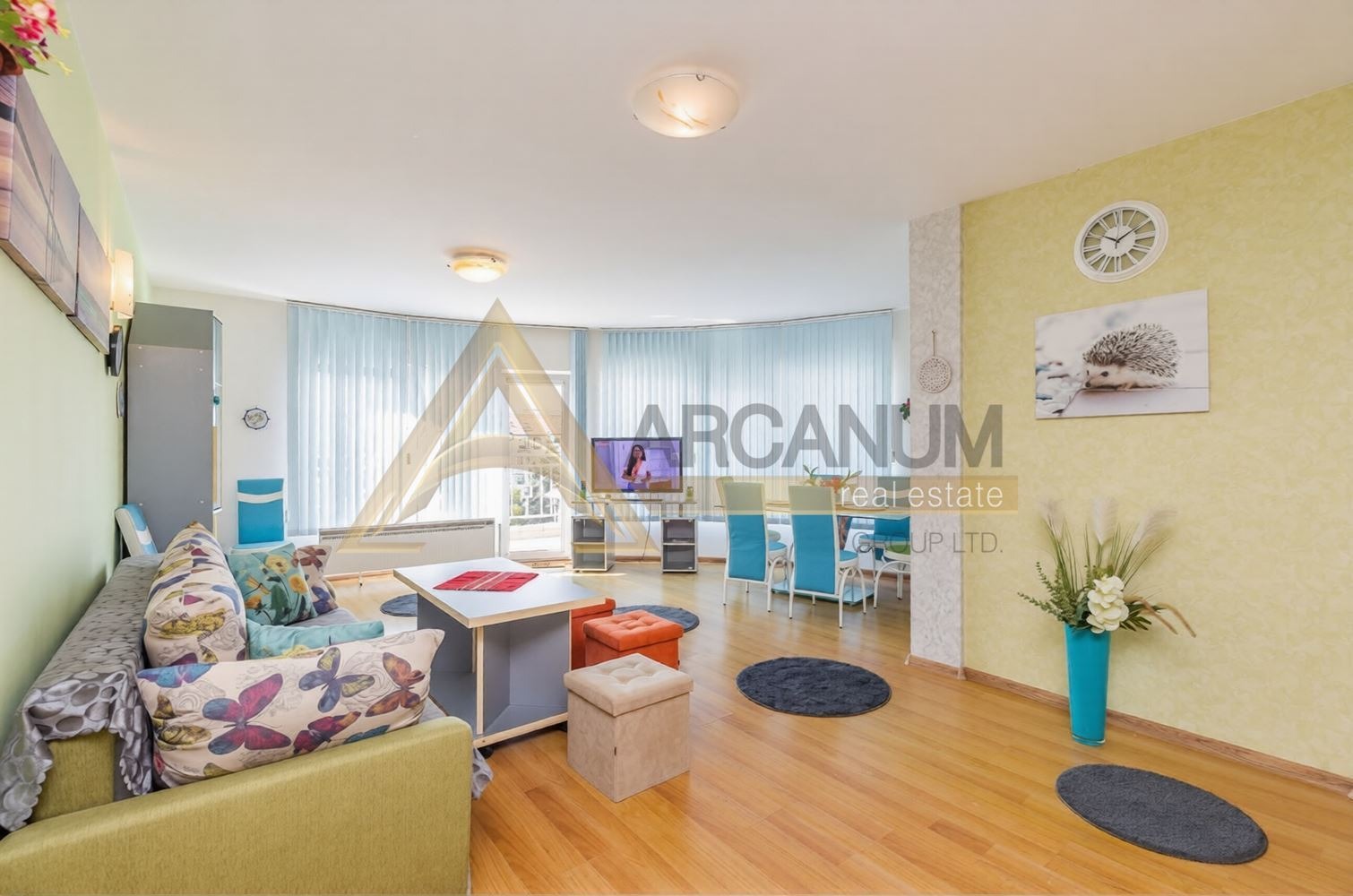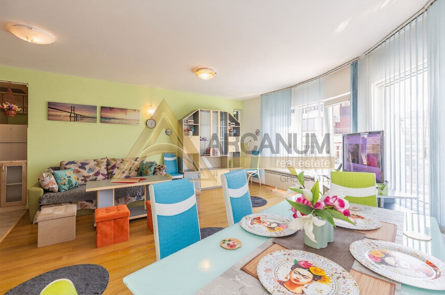 Дневната зона е истинският акцент на жилището впечатляваща със своята площ и френски прозорци, които осигуряват изобилие от естествена светлина през целия ден и създават усещане за простор и елегантност.