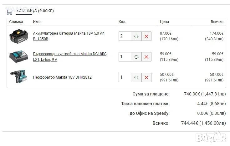 Магазинската цена на комплекта е: 774евро