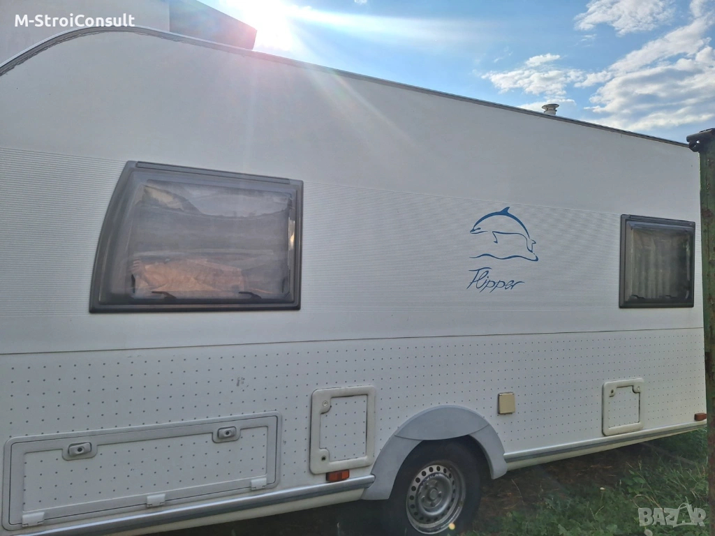 Flipper 435 TN (юли 2007) – 5 м дължина, 4 спални места, напълно оборудвана и готова за къмпинг. Основни предимства: Химическа тоалетна и газово отопление LED осветление, 300 W соларен панел с MPPT контролер, чисто нов литиево-полимерен акумулатор Чисто нови гуми, голяма газова бутилка Форселт за разширение на пространството Покривало за зимата, използвано само веднъж Всички уреди работят перфектно Може да се тегли с категория Б – без нужда от Б+Е Идеална за семейни пътувания и комфортен къмпинг .