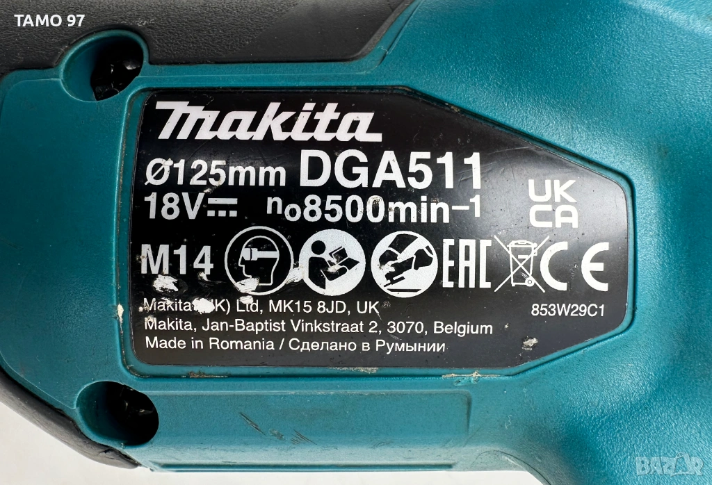 Makita DGA511 - Безчетков ъглошлайф 18V с потенциометър