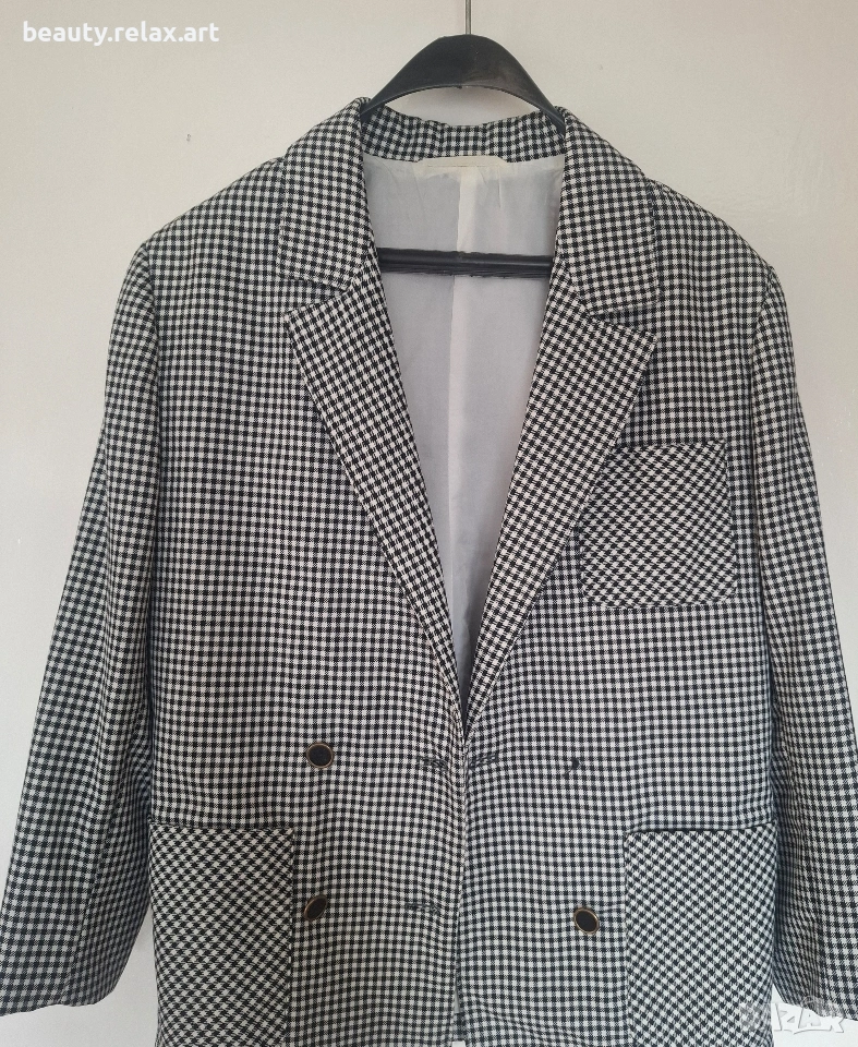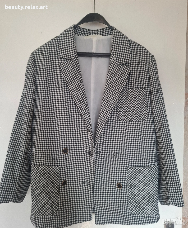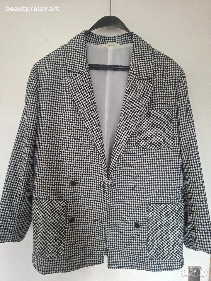 Стилно дамско сако с пепит десен (черно-бяло) → Обява 53688282
