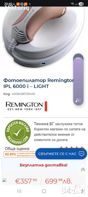 фотоепилатор Remington ipl 6000 I- light → Обява 53688337