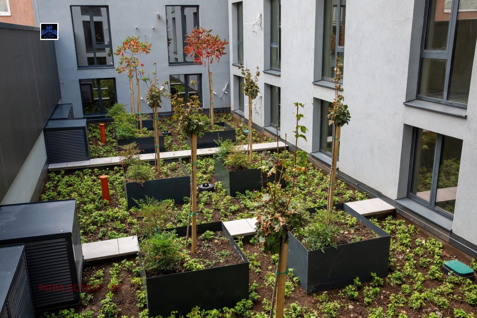 Сградата е изпълнена с луксозни и просторни общи части, проектирани с внимание към всеки детайл и изградени с висококачествени материали. Поставена е алуминиева дограма Reynaers (Белгия) серия CS 77, осигуряваща отлична енергийна ефективност, шумоизолация и комфорт.