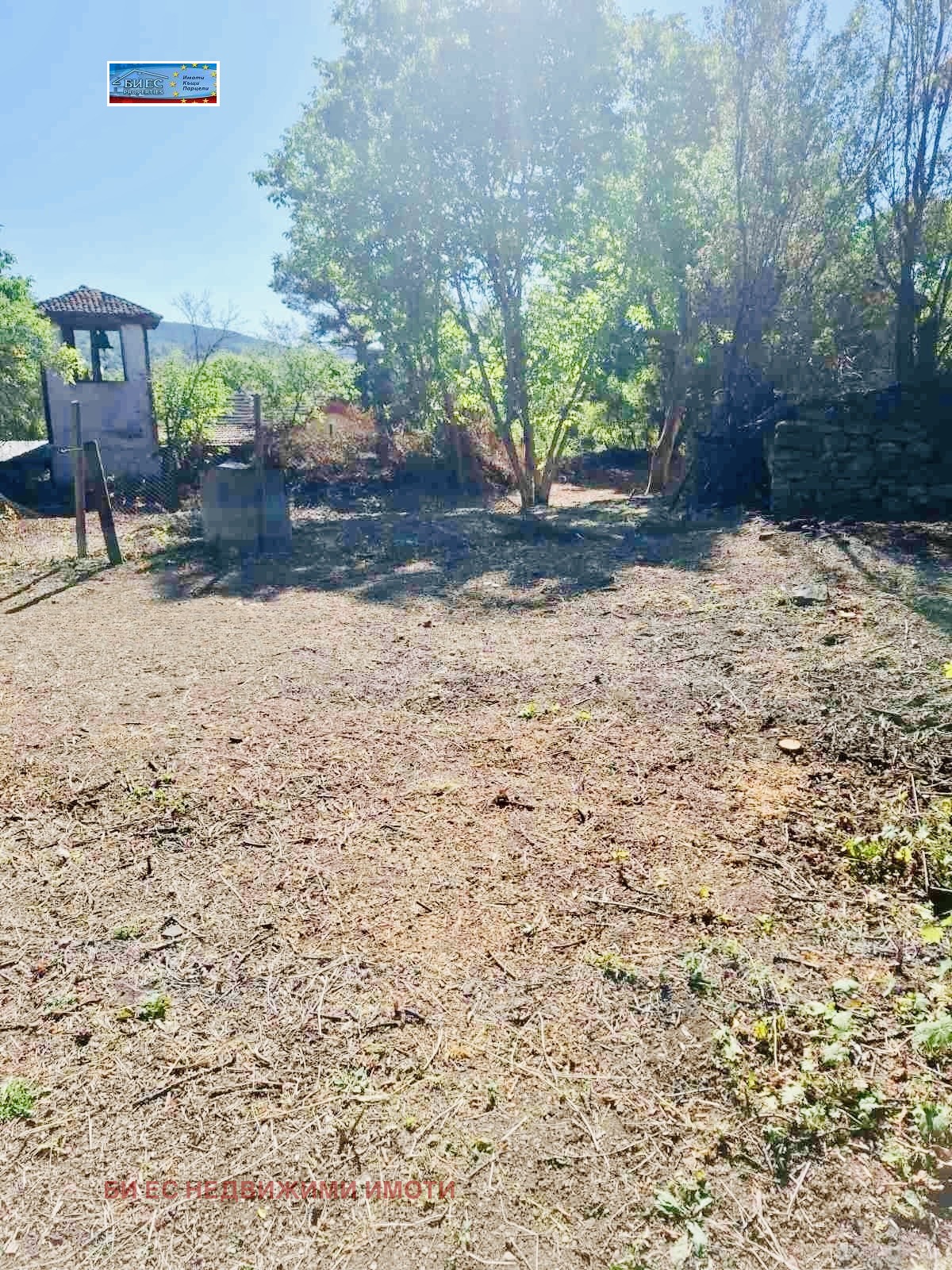 Дворното място е просторно и равно с площ от 1640 кв. м, в регулация. Има паянтов гараж и външна WC.