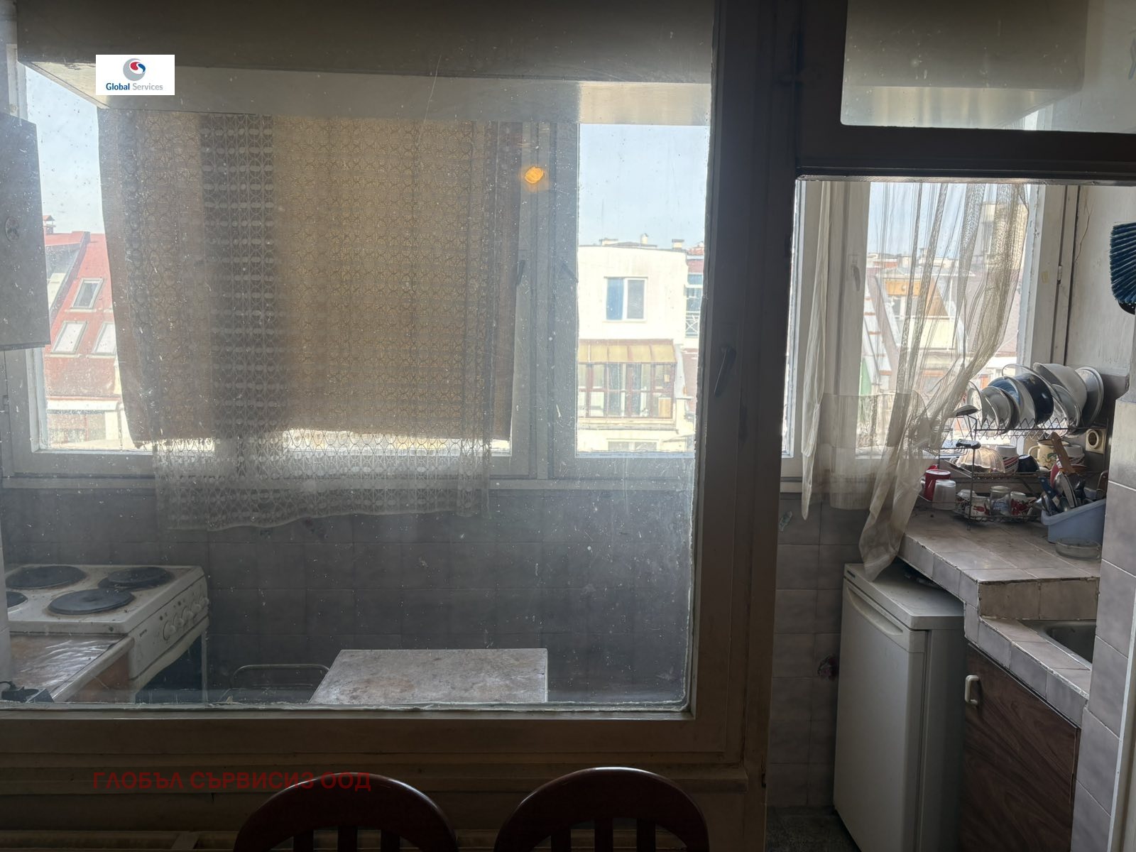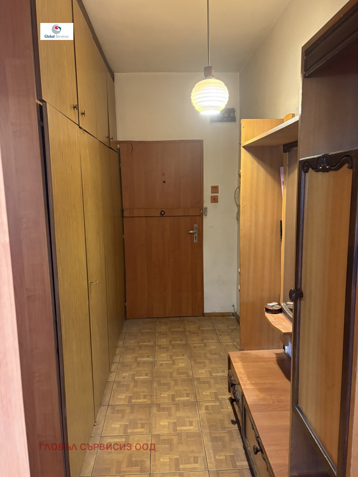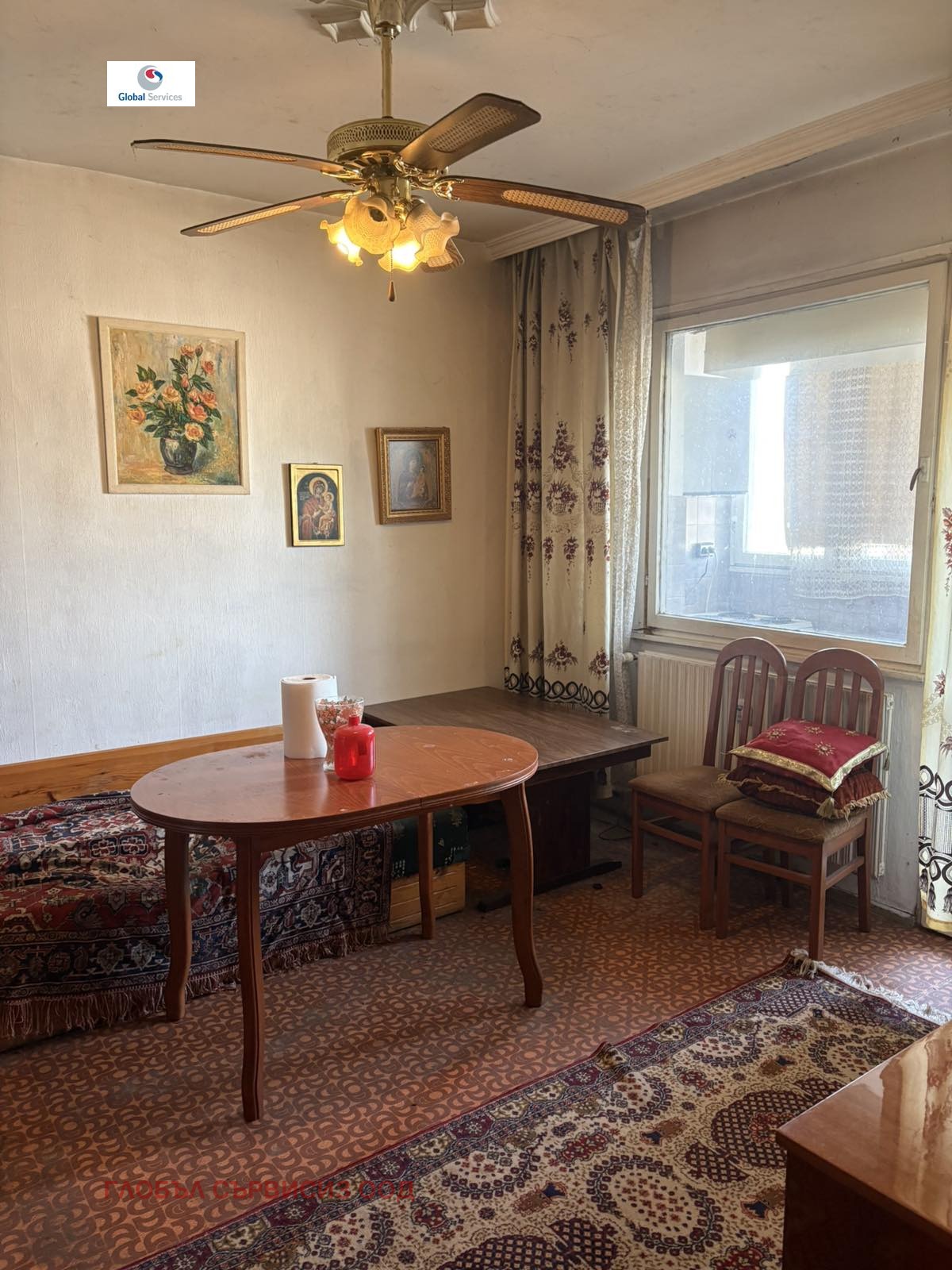 Апартаментът е непреходен и е в състояние за ремонт, със следното разпределение: коридор, хол с балкон, спалня с излаз на усвоен балкон, отделна кухня, баня с тоалетна. Към момента е извършено преустройство, като кухненският бокс е изнесен на усвоения балкон, което позволява обособяване на две самостоятелни спални и хол.