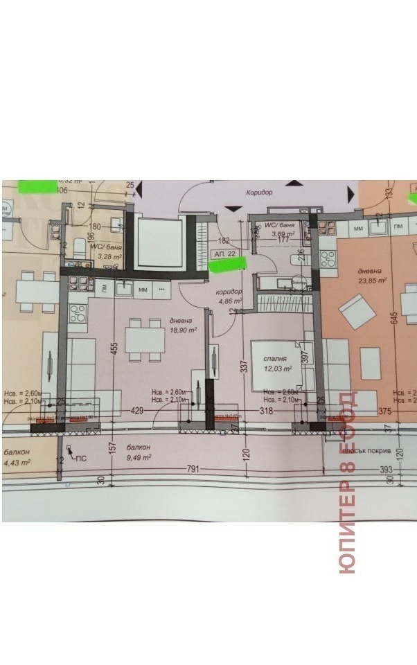 Цена 2400 евро на кв.м. без ДДС. Апартамент 22.