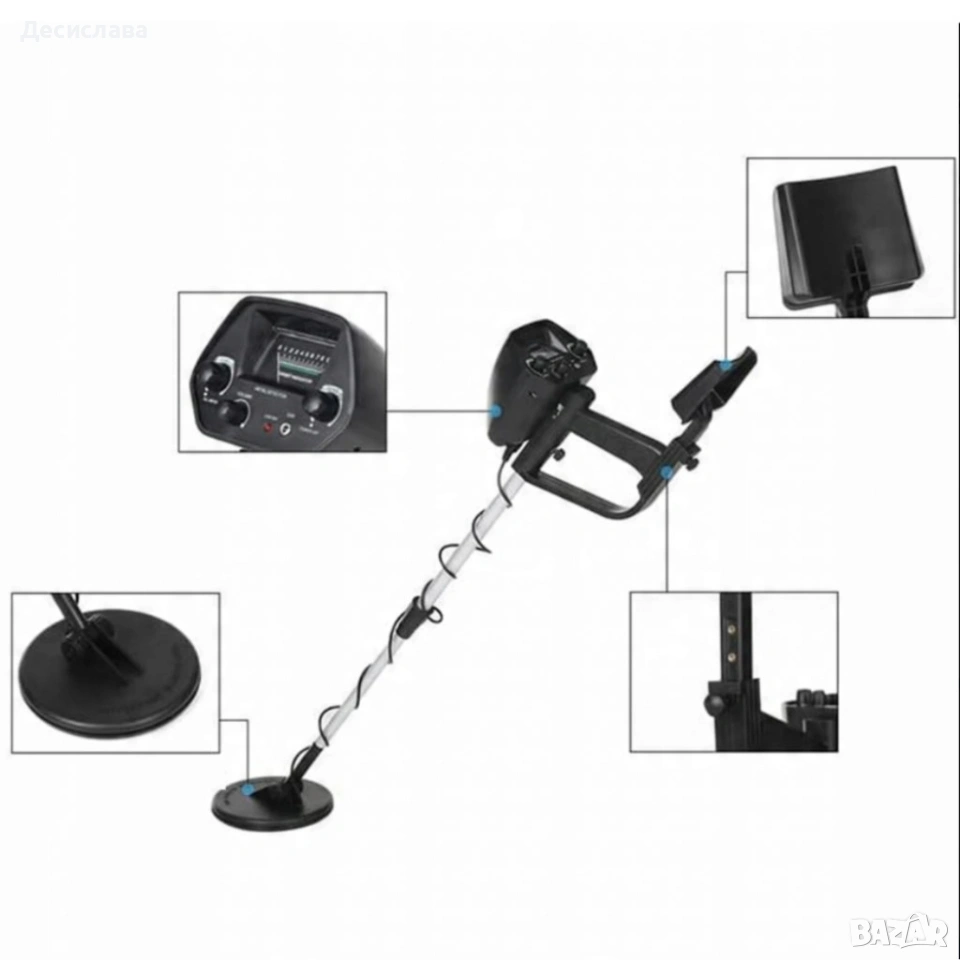 Водоустойчив металотърсач за злато, сребро и монети K-1374 Открийте скритите съкровища с практичен и лек металотърсач, подходящ както за начинаещи, така и за любители търсачи. Моделът K-1374 комбинира надеждна работа, регулируема чувствителност и водоустойчива сонда за търсене върху различни терени – плаж, поляни, гори и дворове. Устройството разполага с режими за изцяло метално откриване, механичен показалец и аудио режим, което позволява по-прецизна работа и по-добра ориентация при засичане на обект. Функцията за дискриминация помага да отсявате нежелани метали, а звуковата и визуалната аларма улесняват локализирането на находката. Регулируемата височина прави уреда удобен както за възрастни, така и за по-млади потребители. Лекият корпус от ABS пластмаса и алуминий гарантира комфорт при продължително използване. Технически характеристики: Работна честота: 5 kHz Работен ток: в режим готовност 10 mA; при LCD цветна подсветка 80 mA Режими на откриване: изцяло метален, механичен показалец, аудио режим Захранване: 2 x 6F22 9 V батерии (не са включени) Чувствителност: регулируема; мин. 130 мм (тестова монета US Φ 25) до макс. 300 мм Дълбочина на откриване: 10–30 см Регулируема височина: 78–107 см Тегло: 862 г Размери: 107 x 27 x 16.5 см Материал: ABS пластмаса и алуминий Функции: дискриминация на метали, жак за слушалки, звукова и визуална аларма Код на производителя: K-137 Подходящ за търсене на злато, сребро, монети и други метални предмети. Отличен избор за хоби, разходки сред природата и приключения с реален шанс за ценни находки.