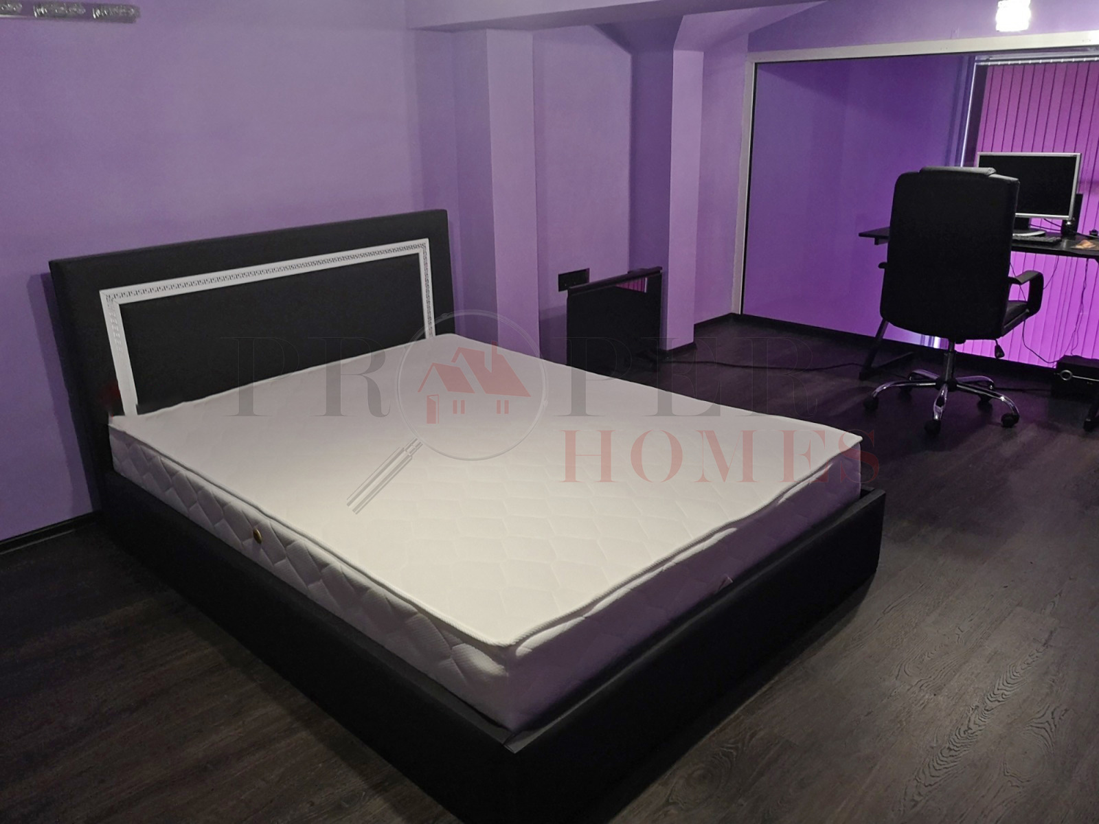 Имотът е разположен на първи етаж в шестетажна сграда. Общата му площ е 103 кв. м., разпределени на две нива. Първо ниво е 62 кв.м. и се състои от антре, хол с трапезария и кухненска част с подово отопление. Височината на тавана е 5м, което създава усещане за пространство. Второто ниво е 41 кв.м. и се състои от място за фитнес, баня, тоалетна, спалня с пригодена офис зона.