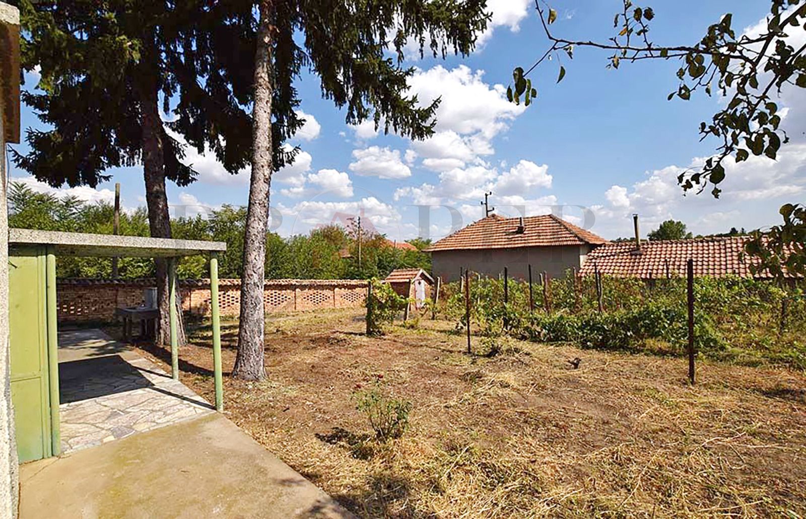 Дворът е равен с площ от около 1600 кв.м. В него има паркомясто за каравана, тухлен сайвант на два етажа с място за стопанисване на животни, пещ, гараж, външна тоалетна и пристройки. Ограден е от здрав тухлен зид.