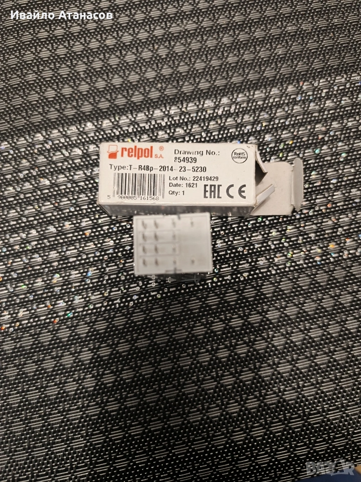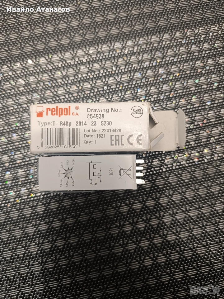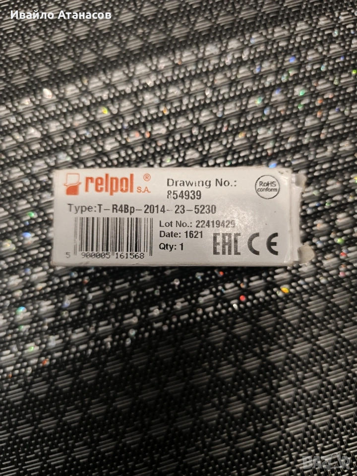 Продавам чисто ново, неизползвано индустриално реле Relpol (произведено в Полша). Устройството е в оригинална кутия, RoHS съвместимо. Технически параметри (от етикета): - Марка: Relpol S.A. - Тип: T-R4Bp-2014-23-5230 - Drawing No.: 854939 - Стандарт: RoHS conform - Контакти: 4PDT (4 превключващи контакта) - Монтаж: За индустриален цокъл / DIN шина Състояние: Чисто ново, неизползвано.