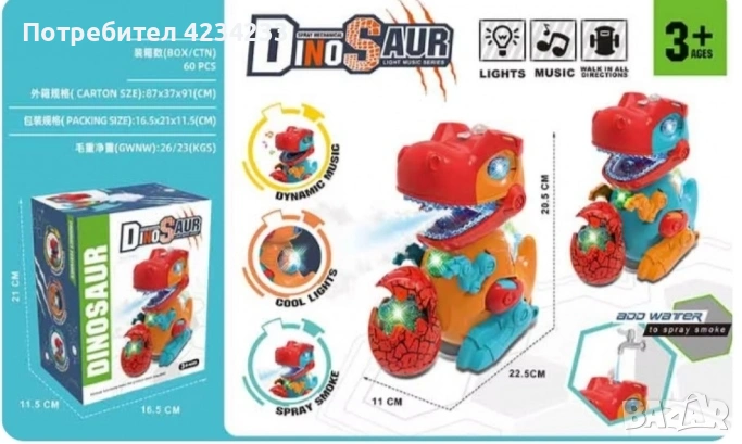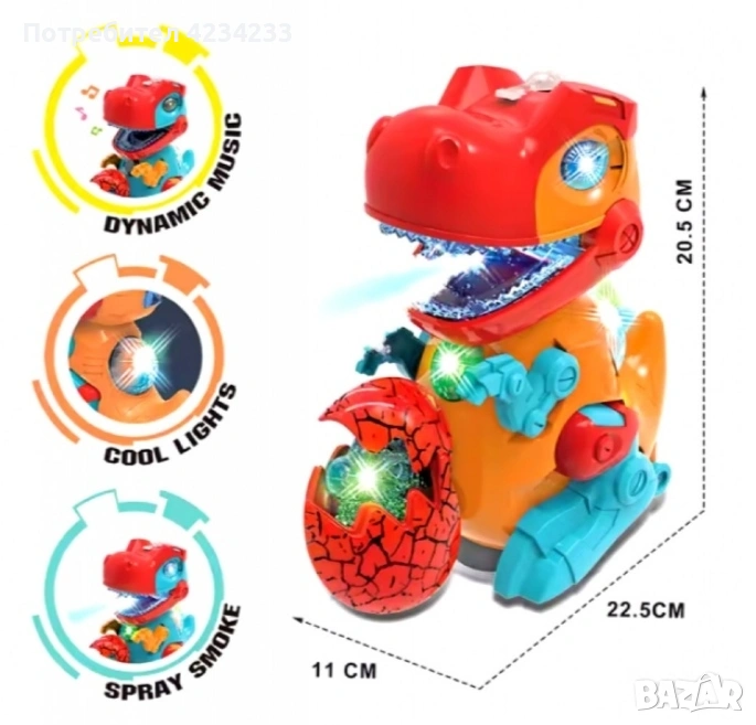 Електрическа играчка динозавър с динозавърско яйце, снимка 1 - Други - 53689695 Електрическа играчка динозавър с динозавърско яйце, снимка 2 - Други - 53689695 1/2
