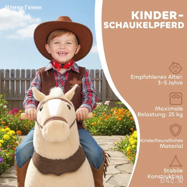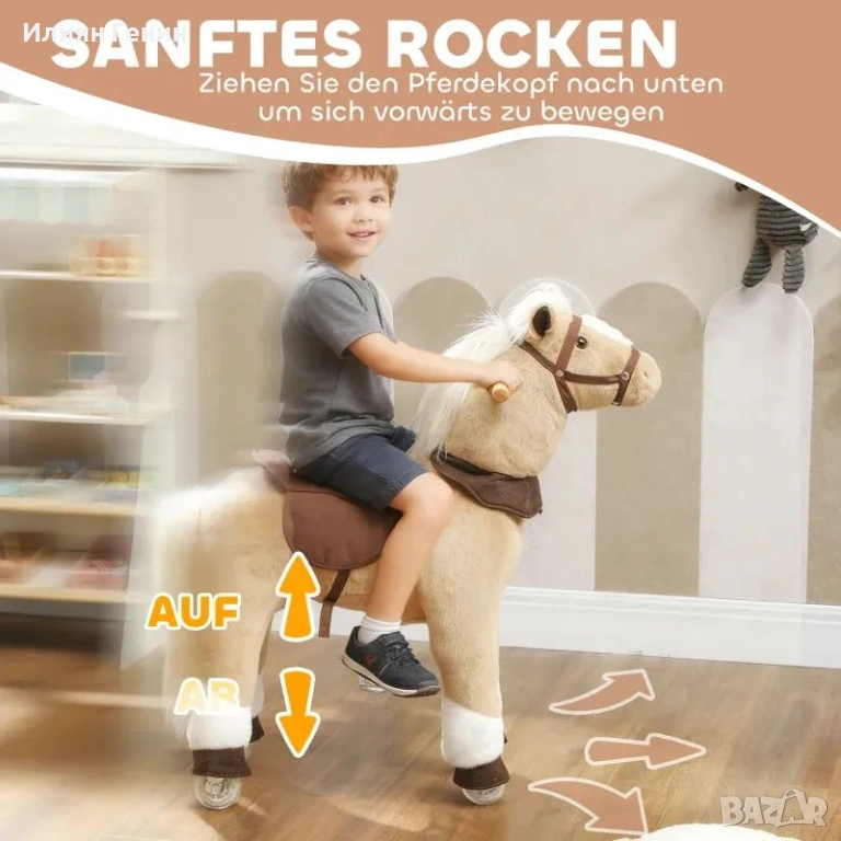 ✔ Меката, плюшена материя на люлеещото се конче осигурява удобно и нежно возене за малчуганите.