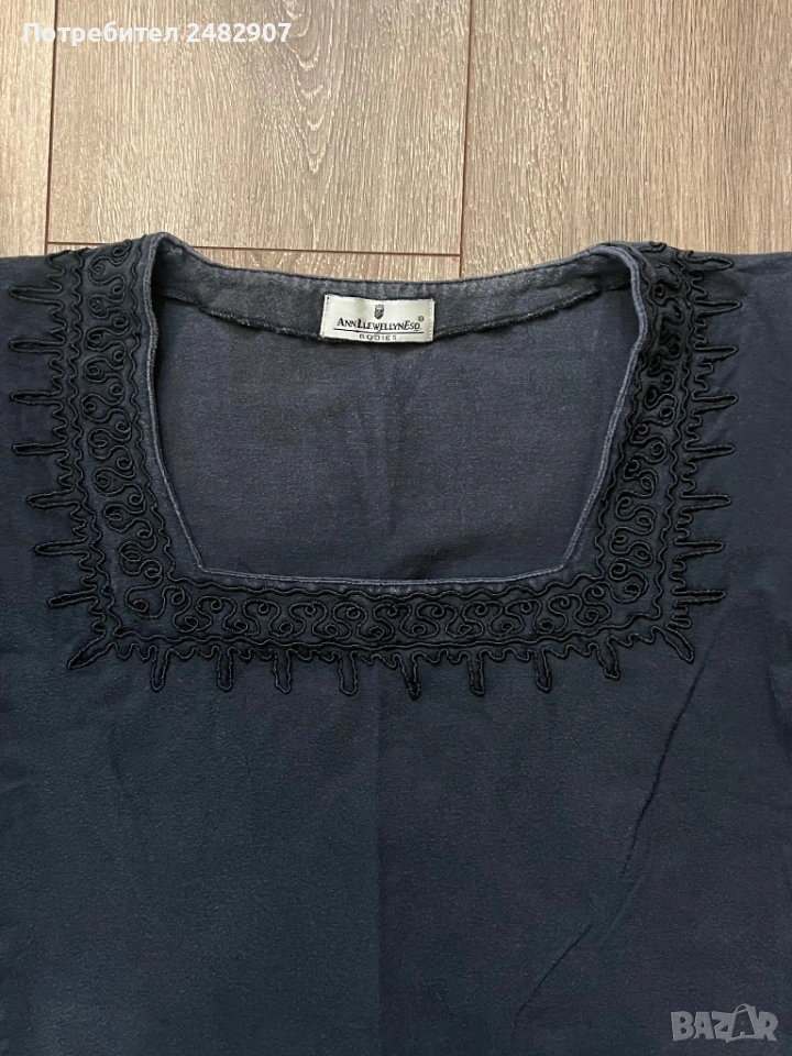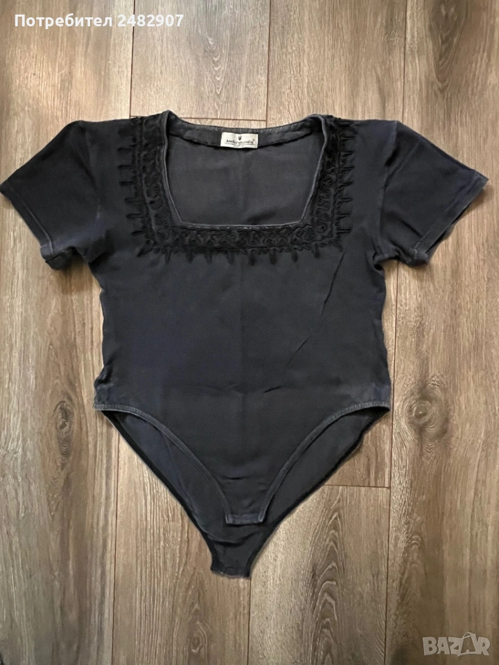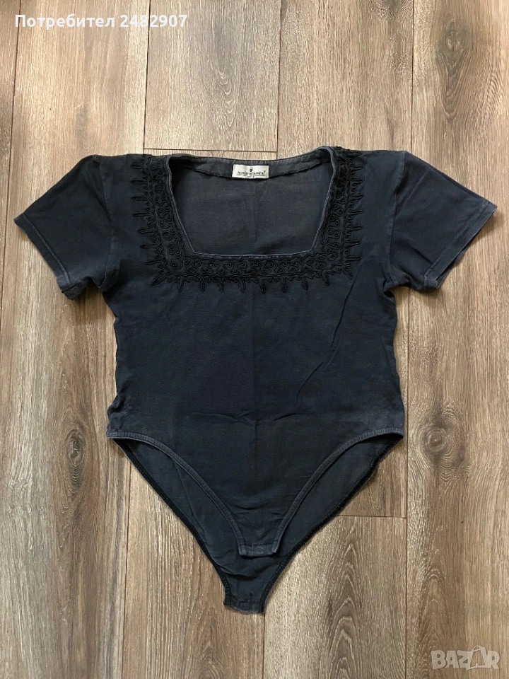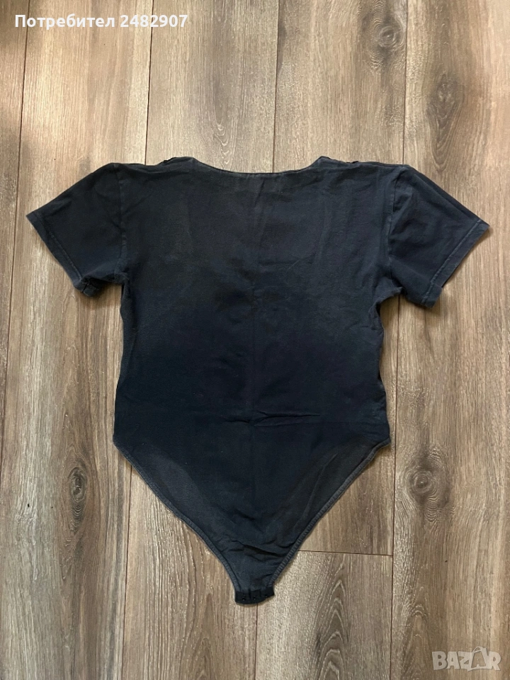 Памучно черно дамско боди, размер XL. Съдържа 95 % памук и 5 % еластан. Ширина в раменете - 44 см, ширина под мишниците - 46 см, ширина в долната част - 43 см, дължина от врата до долу - 56 см (отпред) и 64 см (отзад), дължина на ръкава от рамото - 16 см, ширина на ръкава в долната част - 16,5 см. Запазено, с нормални следи от използване.