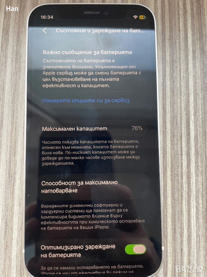 Телефонът работи перфектно и външно е почти като нов. Оригинална батерия и чист айклауд. Продава се само телефона с един кейс. Батерията е на 76% и изкарва деня с нормална употреба.