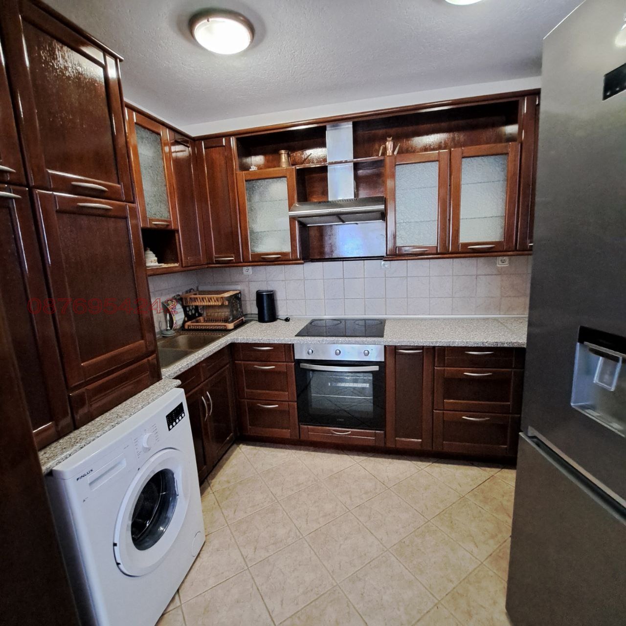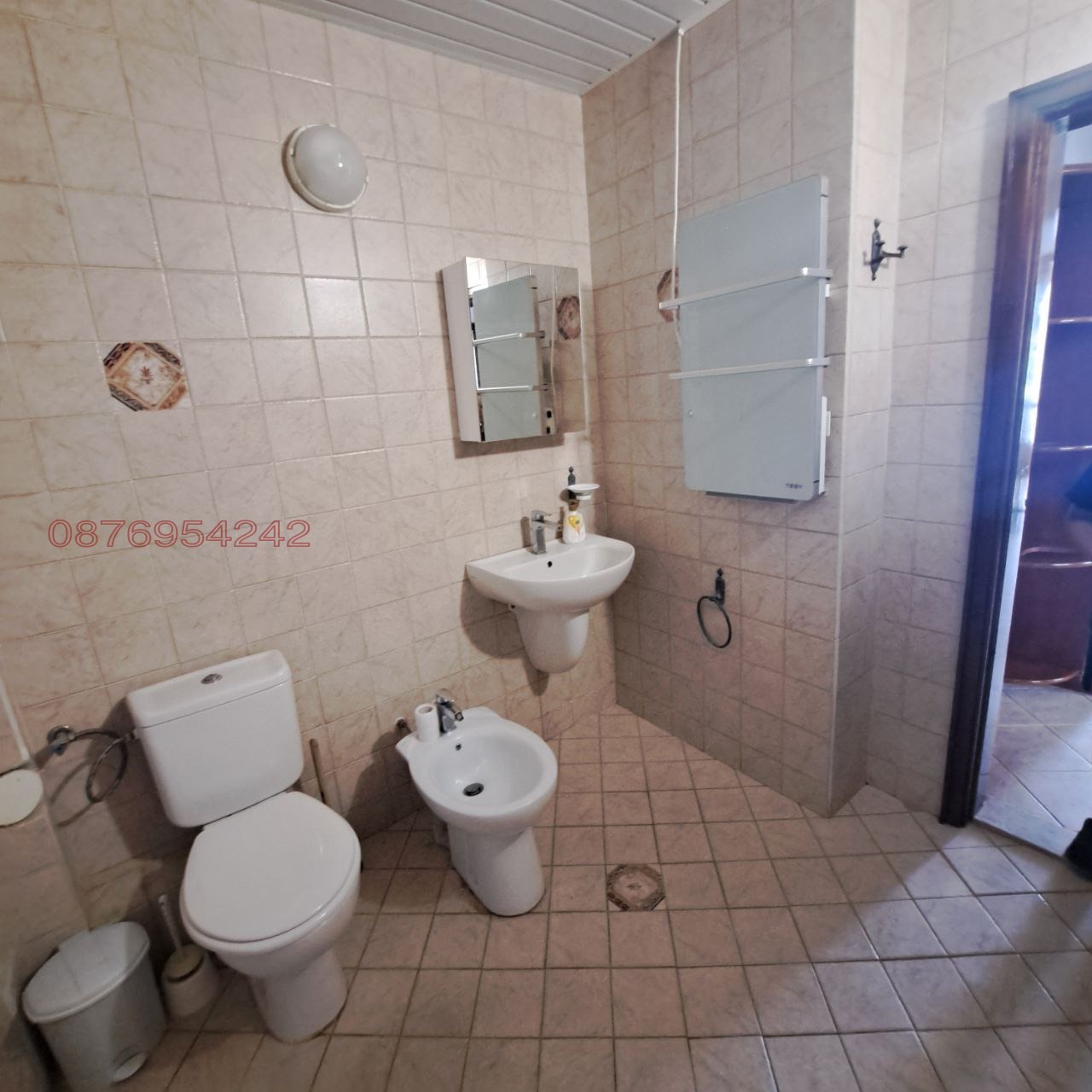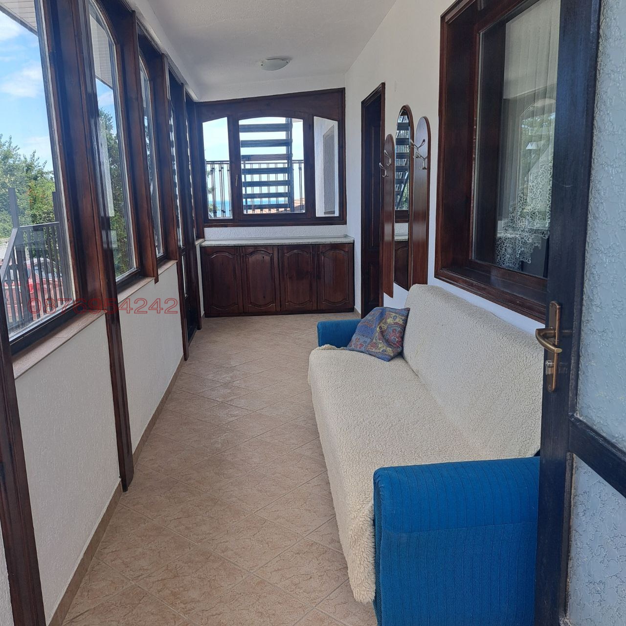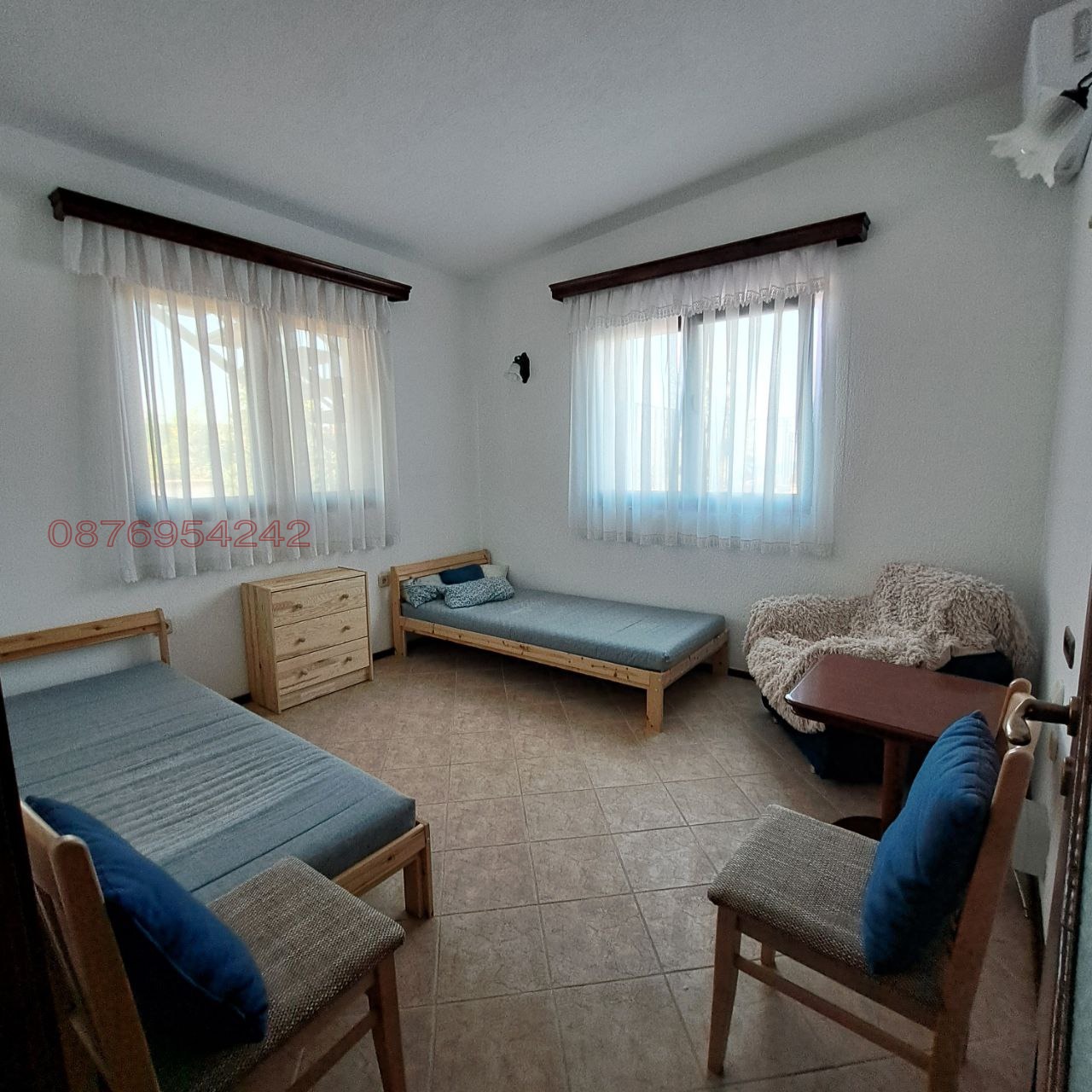 Апартаментът е ситуиран на 1-и и 2-ри етажи в двоетажна къща и разполага с площ от 389 кв.м. (дополнително има покривна тераса - 160 м.кв.) разгърната в следното разпределение: 1-и этаж: антре-веранда с диван, коридор, кухня-дневна с голям диван, маса, 4 стола; 2 спални (3 легла), баня с тоалетна; партер: антре-коридор с растегателен диван, сауна, кухня, дневна с 2 растегателни дивани, маса, 4 стола; спалня (2 легла), баня с тоалетна; килер. Кухните разполага с всички необходими прибори, електрическа кана, филтър за вода. Жилището е ново, светло, с югоизточно изложение, напълно обзаведено и оборудвано с нови мебели и електроуреди (вграден плот с 4 нагревателни зони и вграден плот с 2 нагревателни зони, фурна, 2 аспиратора, 2 хладилника, електрическа кана, 2 перални, 5 климатика, 2 бойлера). Отоплението и охлаждането е с климатици. Напълно безплатно, но при условие за висококачествено почистване (или заплащане на такова почистване по предварителна договорка), можете да използвате: пещта с барбекю (има и отделно барбекю за този апартамент), намираща се в двора на къщата и традиционна подземна трапезария (механа), предназначени за обществено ползване. Басейнът функционира през лятото и се заплаща допълнително. Жилището намира се в тих и спокоен район в близост до плаж Слънчев ден, спирка на градски транспорт, магазини. ПАРКОМЯСТО включено в цената на наема! Без домашни любимци. За повече информация вижте уебсайта: https://sites.google.com/view/varnahome