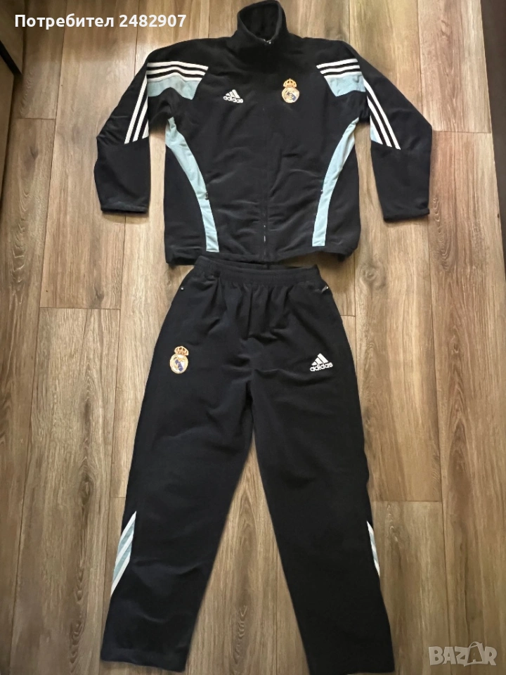 Тъмно син велурен дамски спортен комплект, размер S. Съдържа 100 % полиестер.