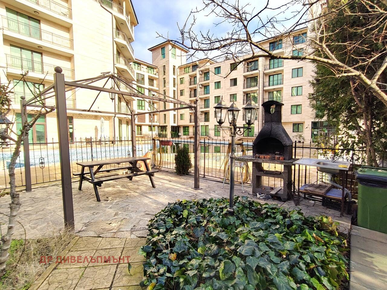 Комплексът разполага с басейн, детска площадка, барбекю, озеленяване и място за разходки и тихи разговори с приятели и съседи. Има контролиран достъп, видеонаблюдение и глуха улица, която може да се използва за паркиране. Комплексът се използва целогодишно.