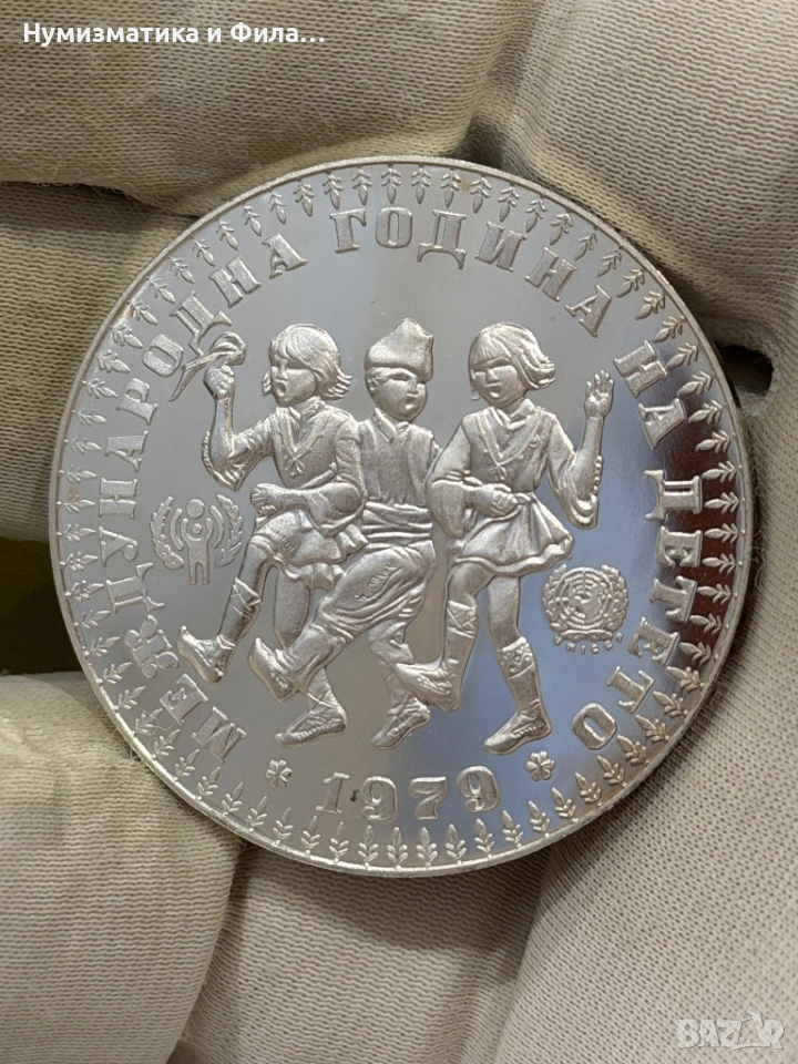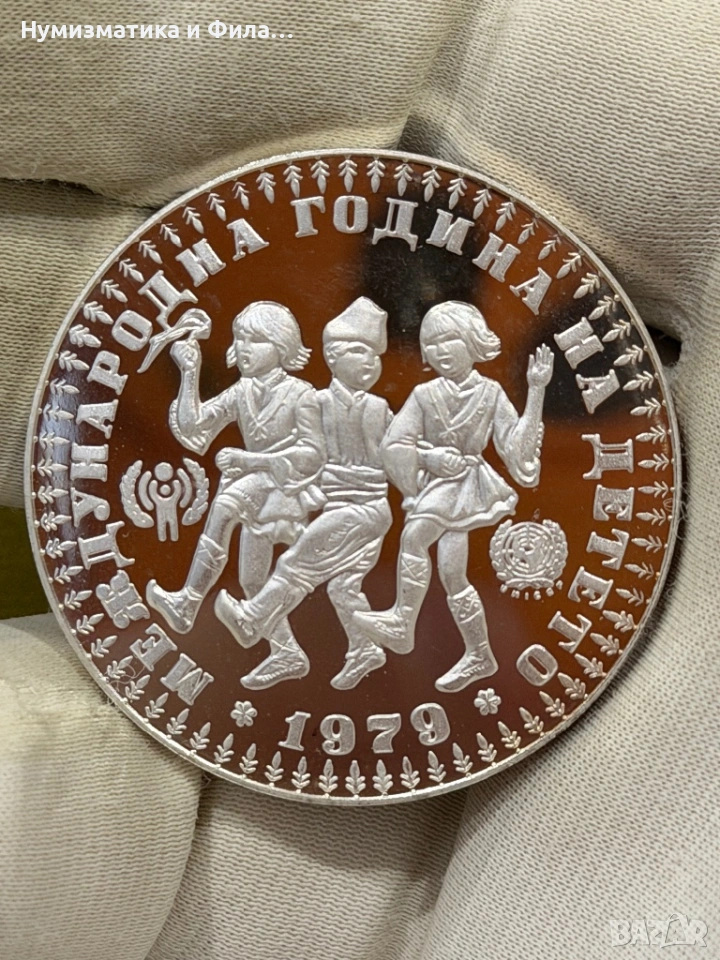 Здравейте предлагам Сребърна юбилейна монета международна година на детето 10 лева 1979 година от редкия вариант с косичка!